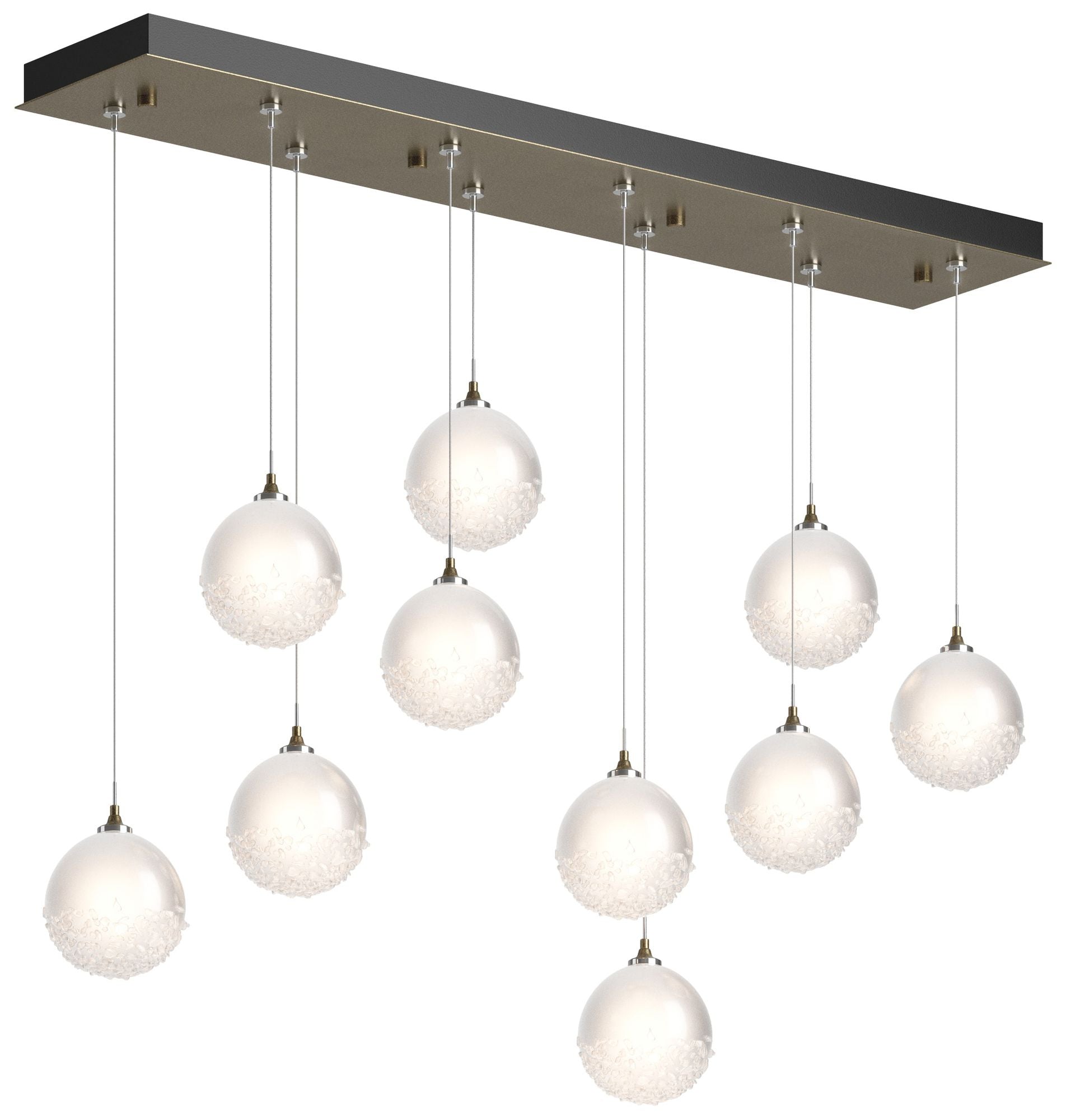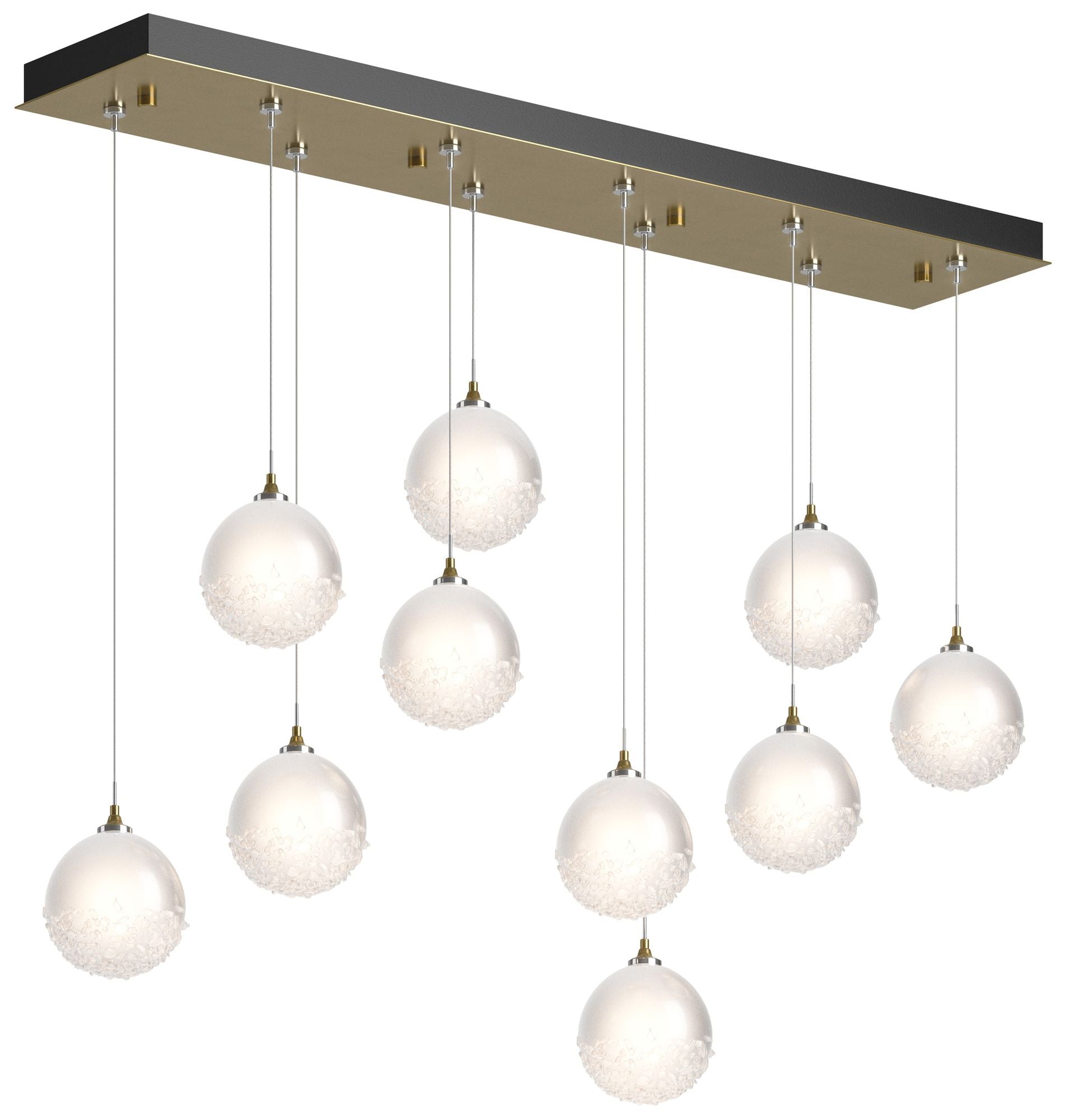 Fritz Globe 9.4"W 10-Light Modern Brass Long Pendant w/ Frosted Glass