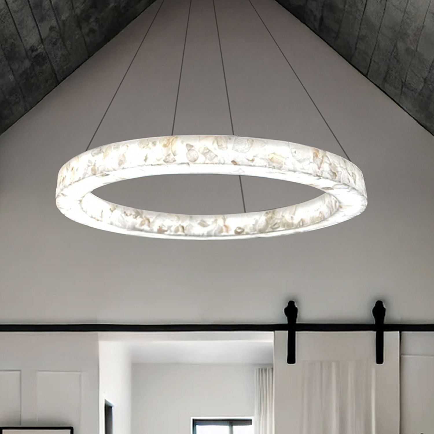 LumenAria Medley 42" Wide Alabaster Rocks LED Ring Pendant