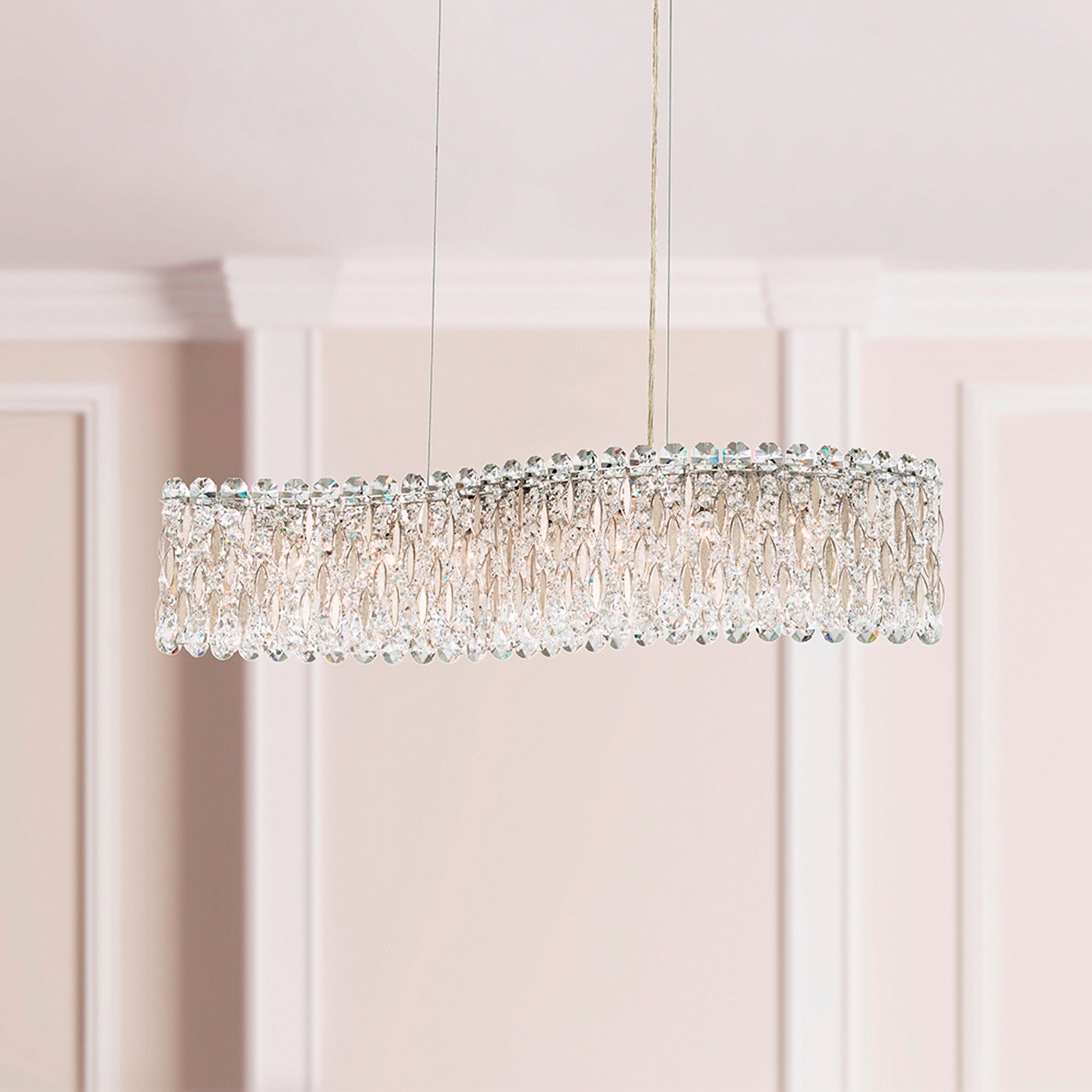 Chantant 16.5"H x 33"W 6-Lt Crystal Linear Pendant in Pol Stainle