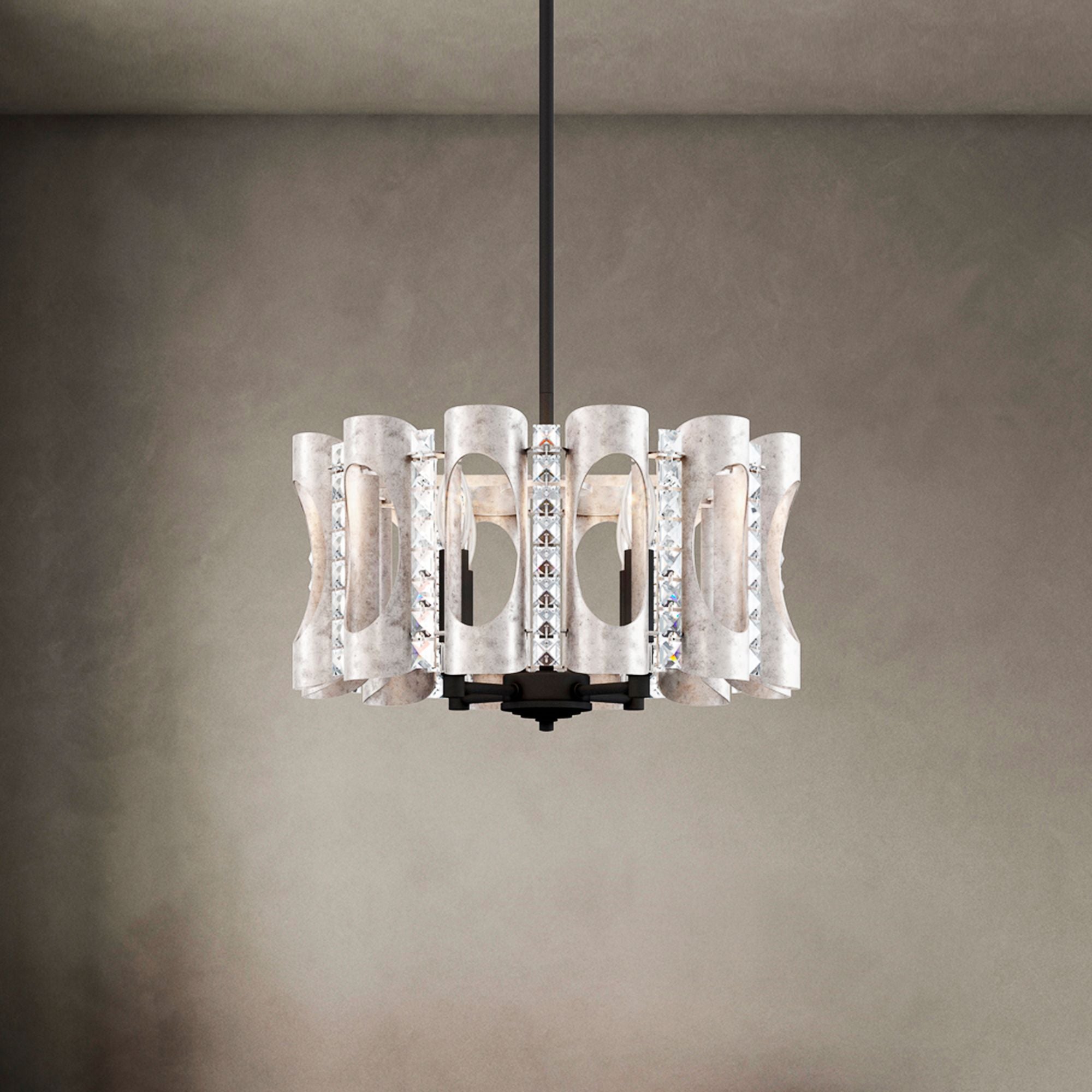 Esteracae 24"H x 24"W 6-Light Crystal Pendant in Antique Silver