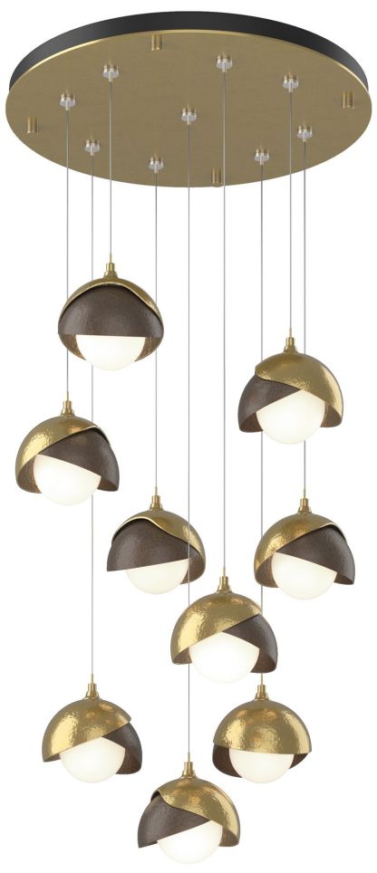 Brooklyn 20.5" 9-Light Brass & Bronze Round Long 2-Shade Pendant