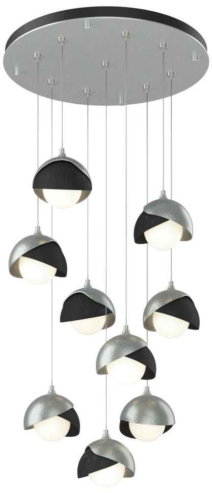 Brooklyn 20.5" 9-Light Platinum & Black Round Long 2-Shade Pendant