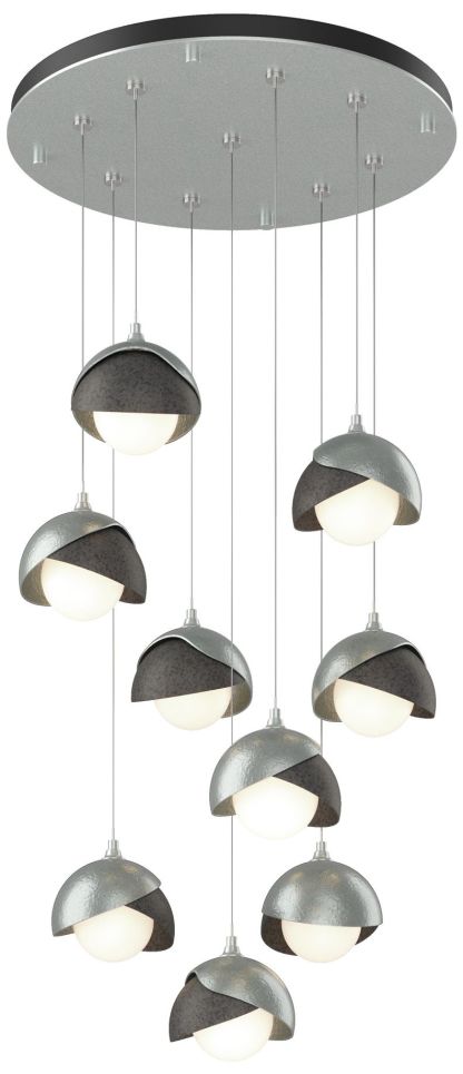 Brooklyn 20.5" 9-Light Platinum & Iron Round Long 2-Shade Pendant