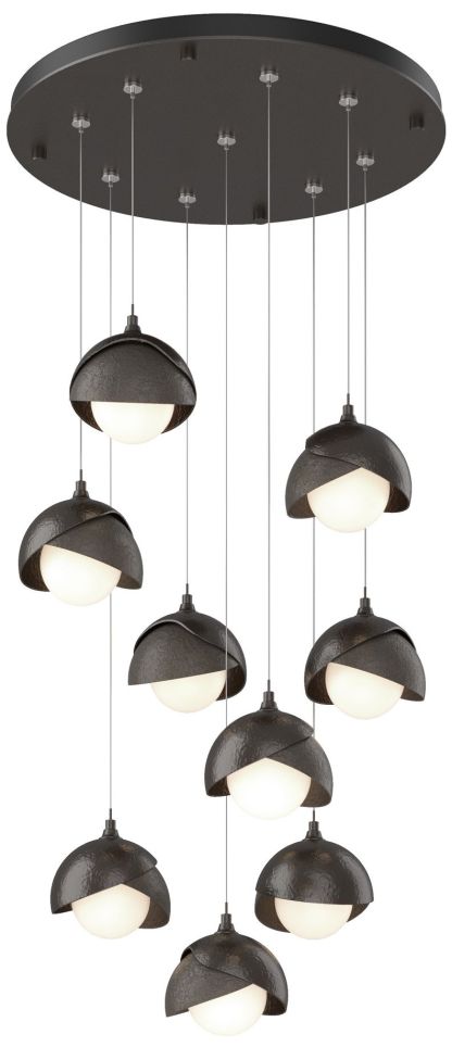 Brooklyn 20.5" 9-Light Rubbed Bronze & Smoke Round Long 2-Shade Pe