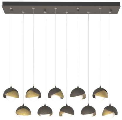 Brooklyn 44.5" Dark Smoke & Brass Rectangular Long 2-Shade Pendant