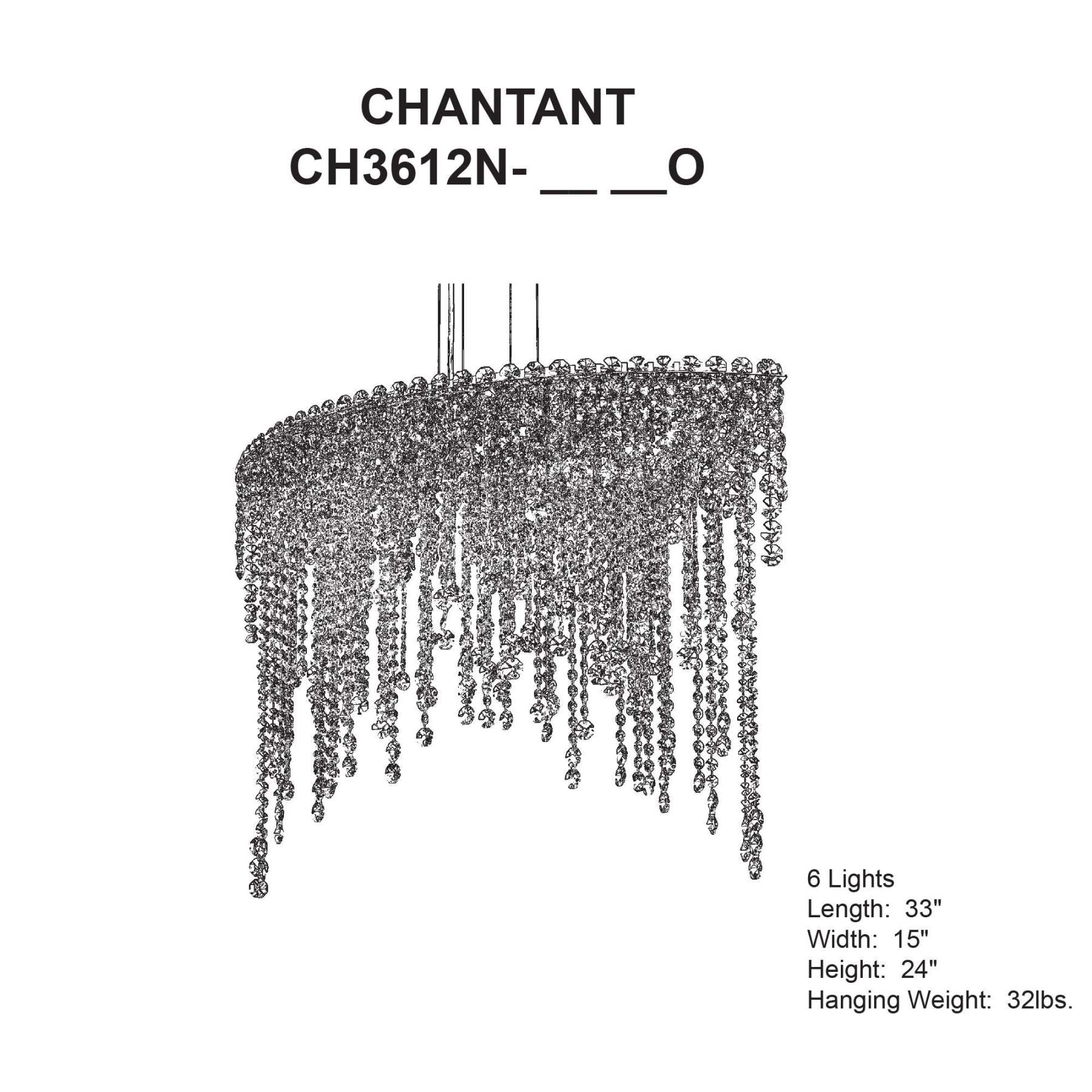 Chantant 24"H x 33"W 6-Light Crystal Linear Pendant in Pol Stainl