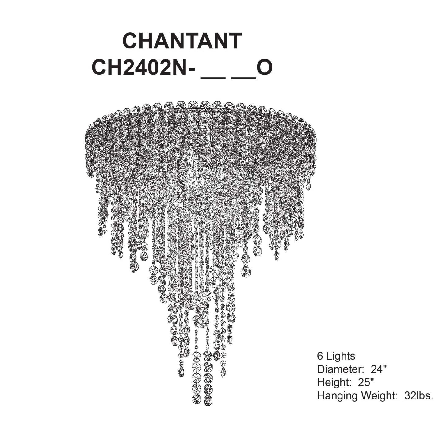 Chantant 28.5"H x 24"W 6-Light Crystal Flush in Pol Stainless Ste