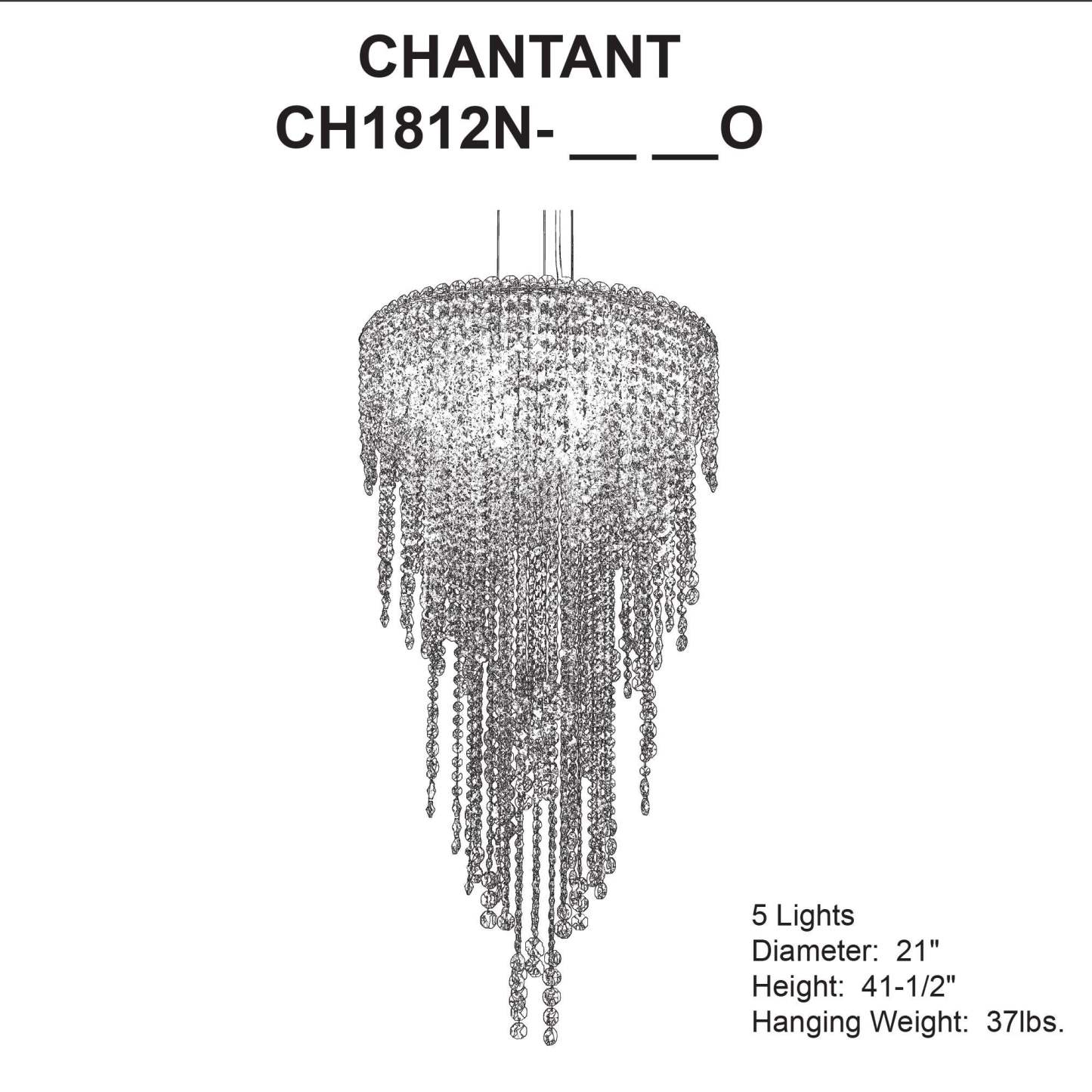 Chantant 41.5"H x 21"W 5-Light Crystal Chandelier in Pol Stainles