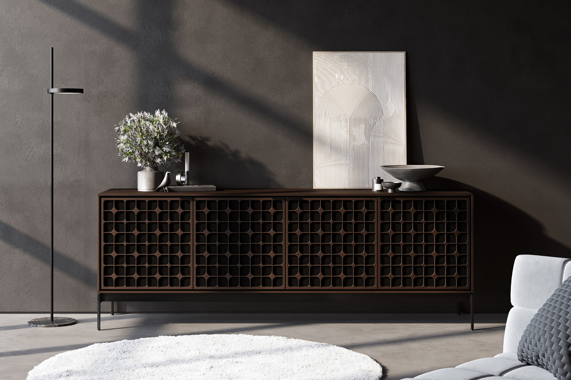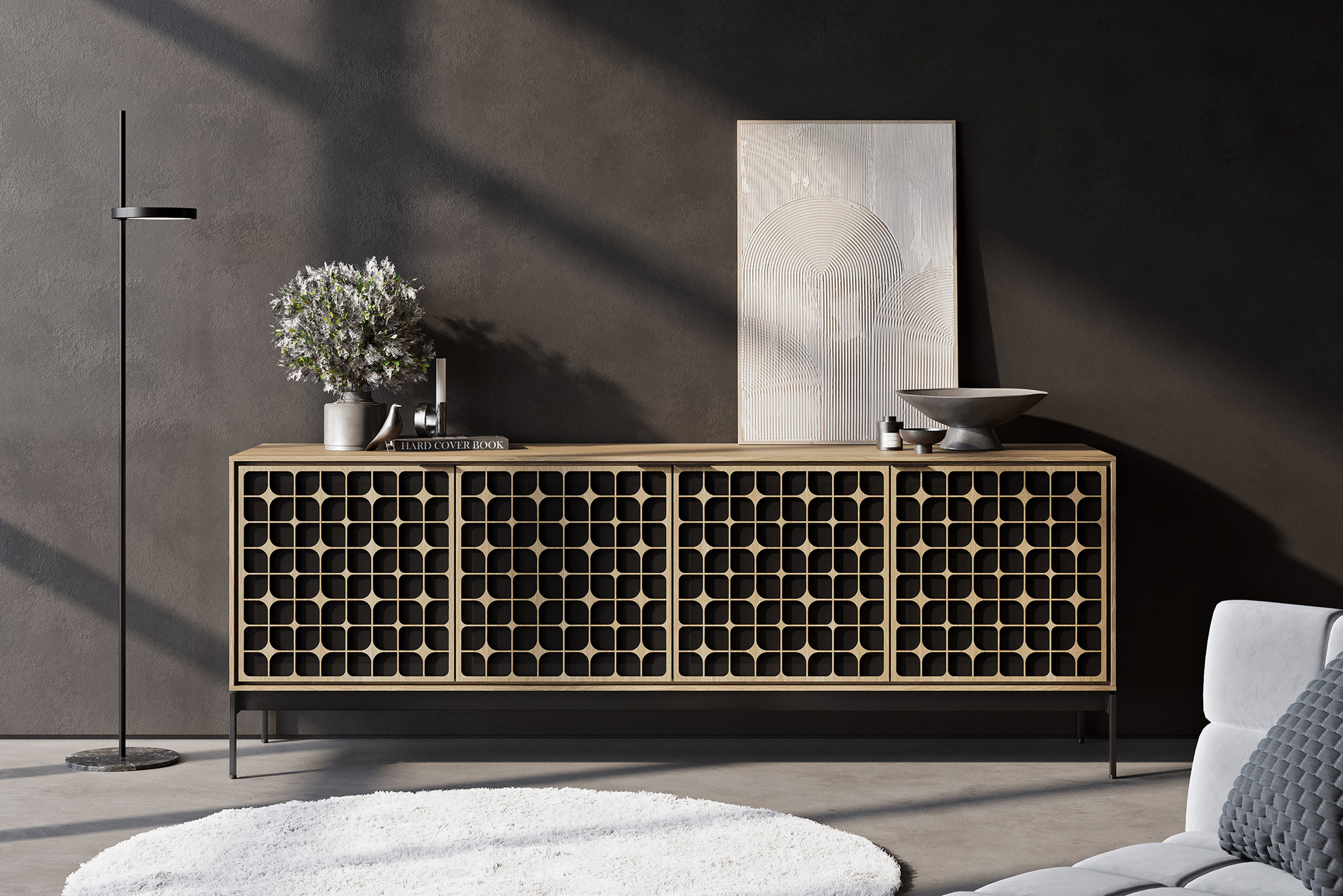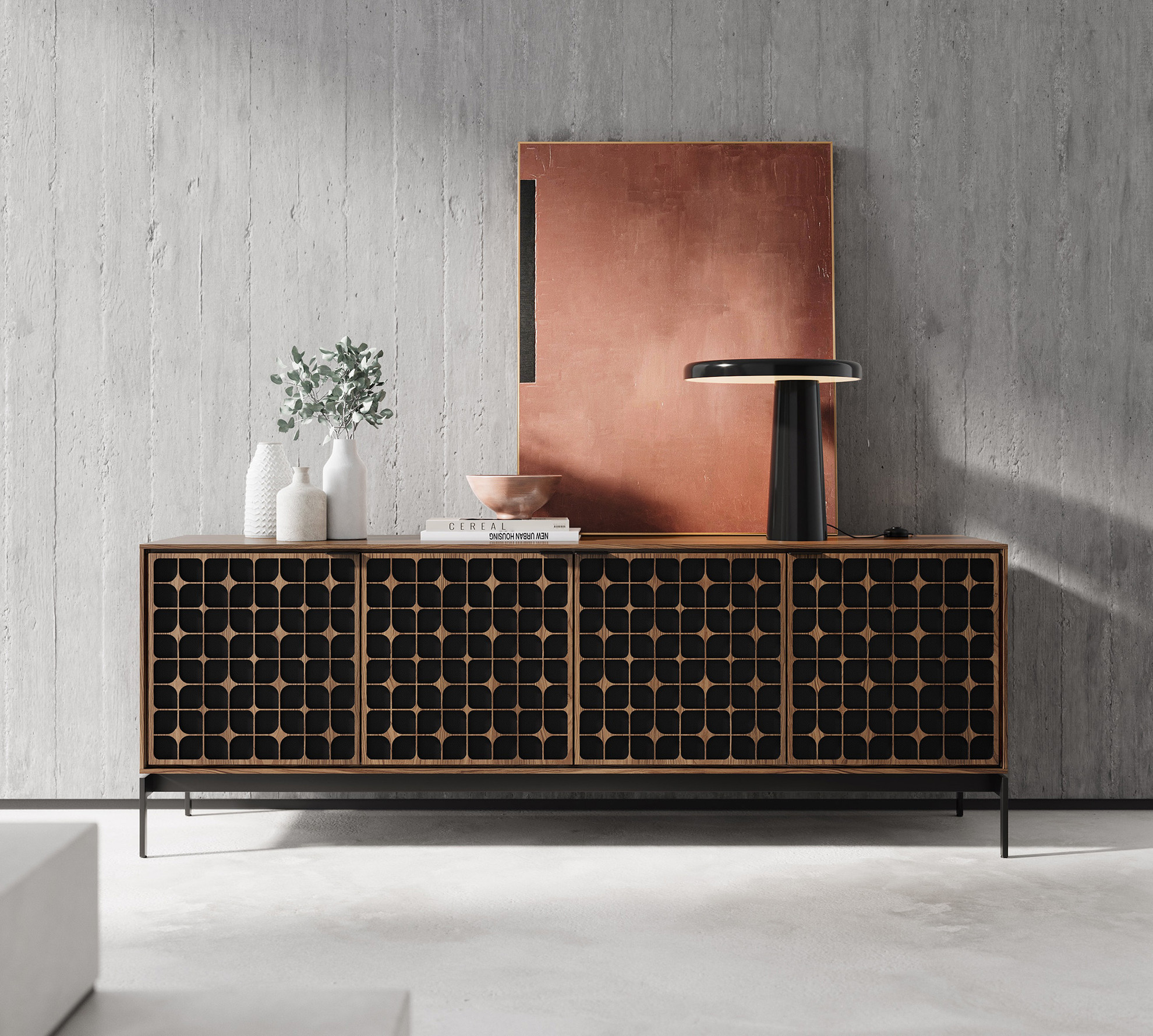 - Toasted Oak with Constellation Patterned Lasercut Doors