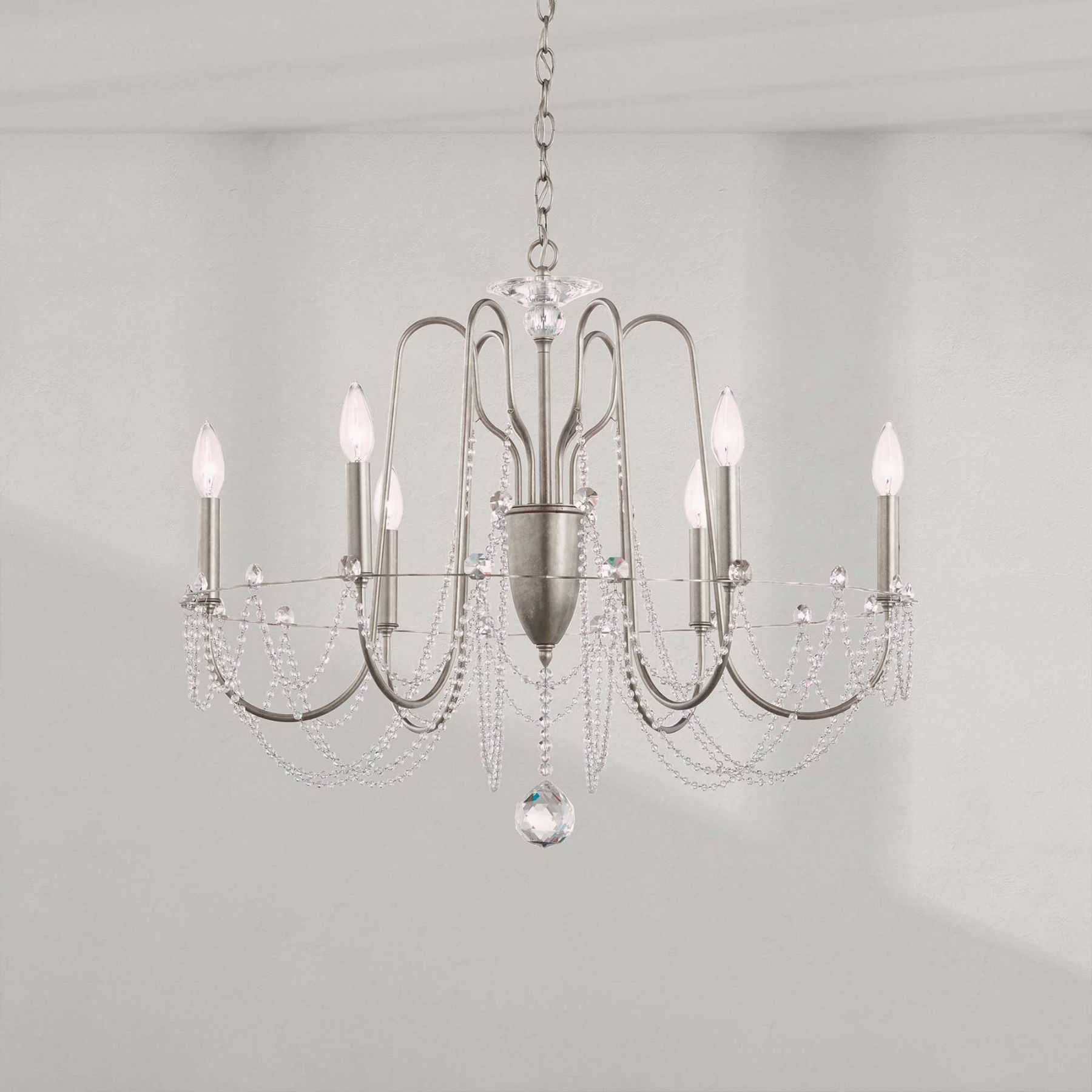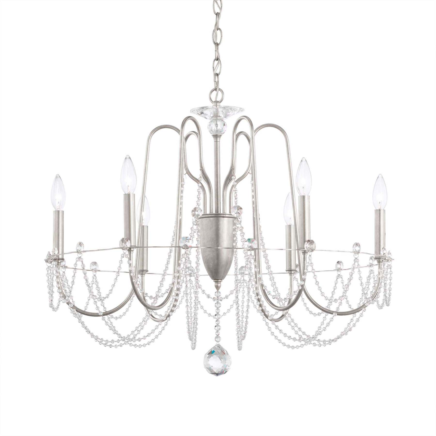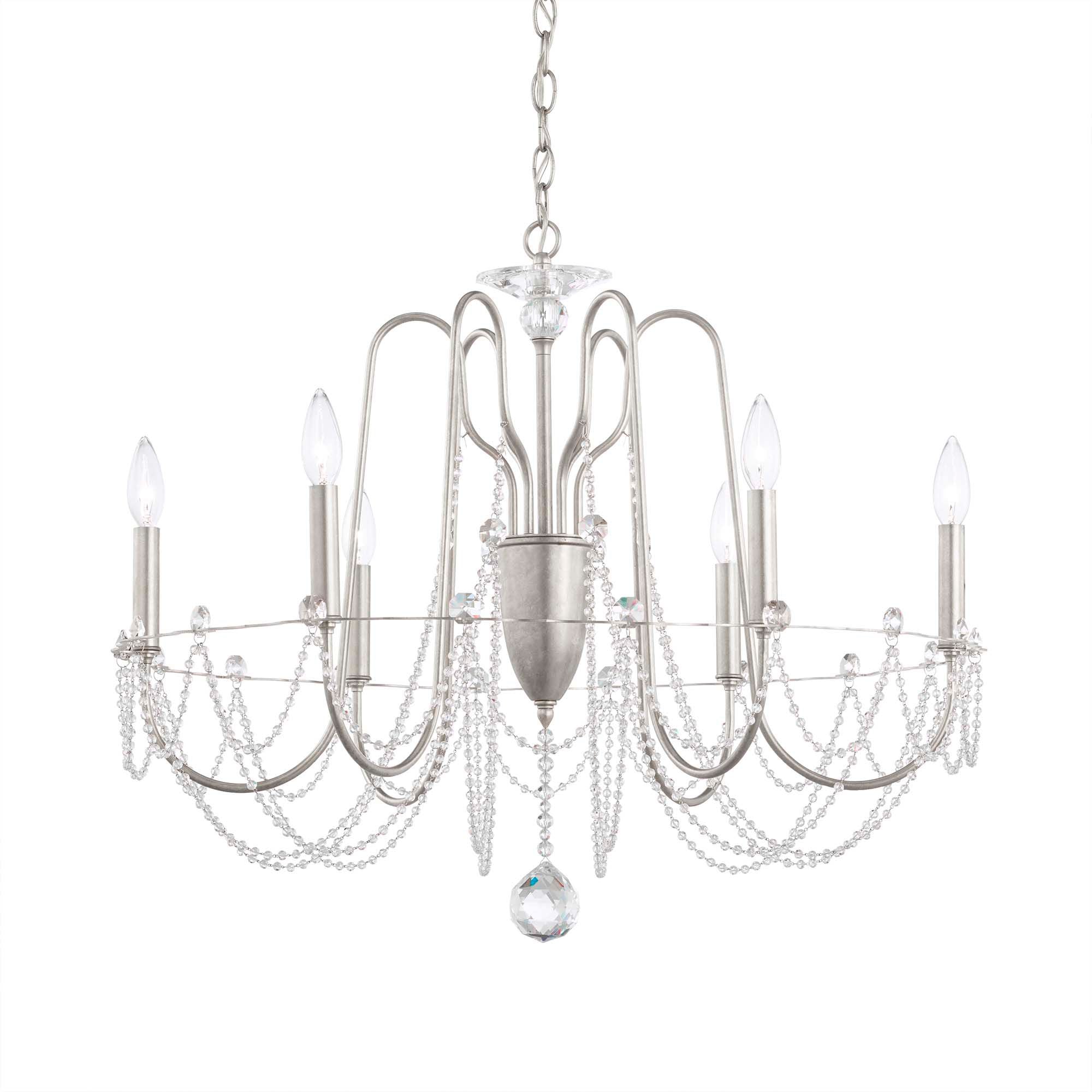 Esmery 24"H x 28"W 6-Light Crystal Chandelier in Antique Silver