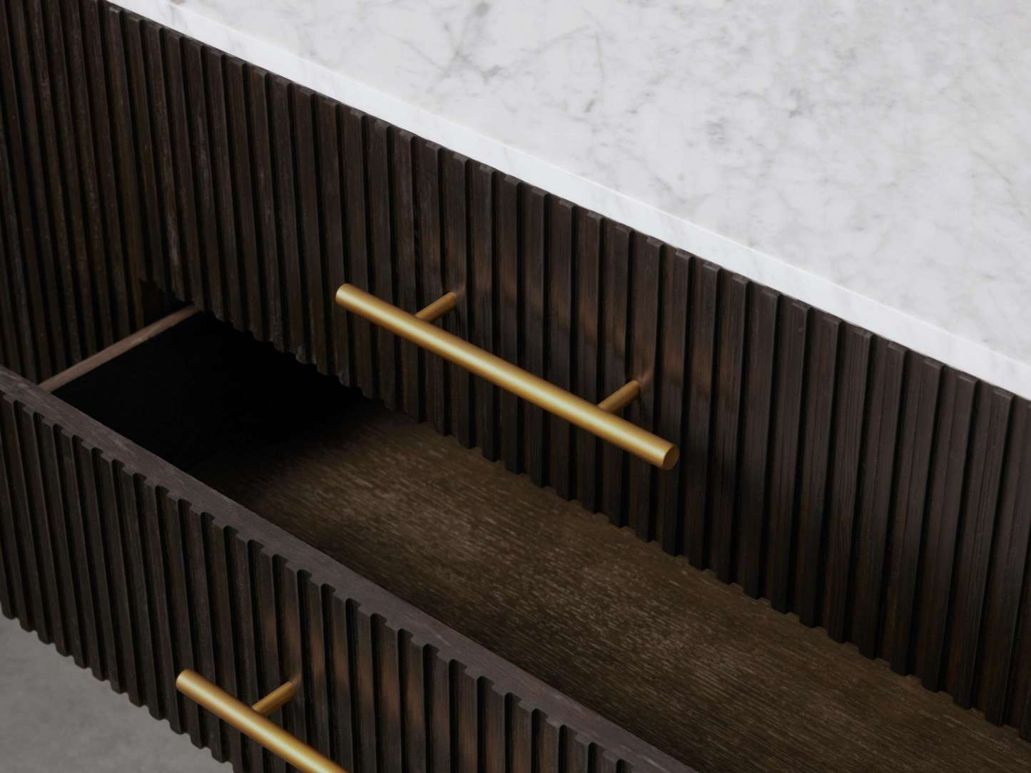 • Drawers sit atop under-mounted glides.