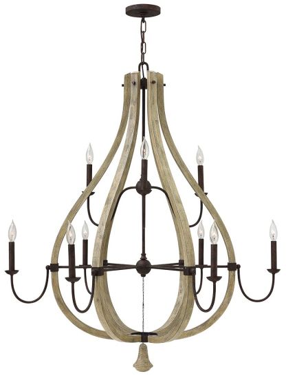 FREDRICK RAMOND CHANDELIER MIDDLEFIELD Large Open Frame Two Tier Iron Rust