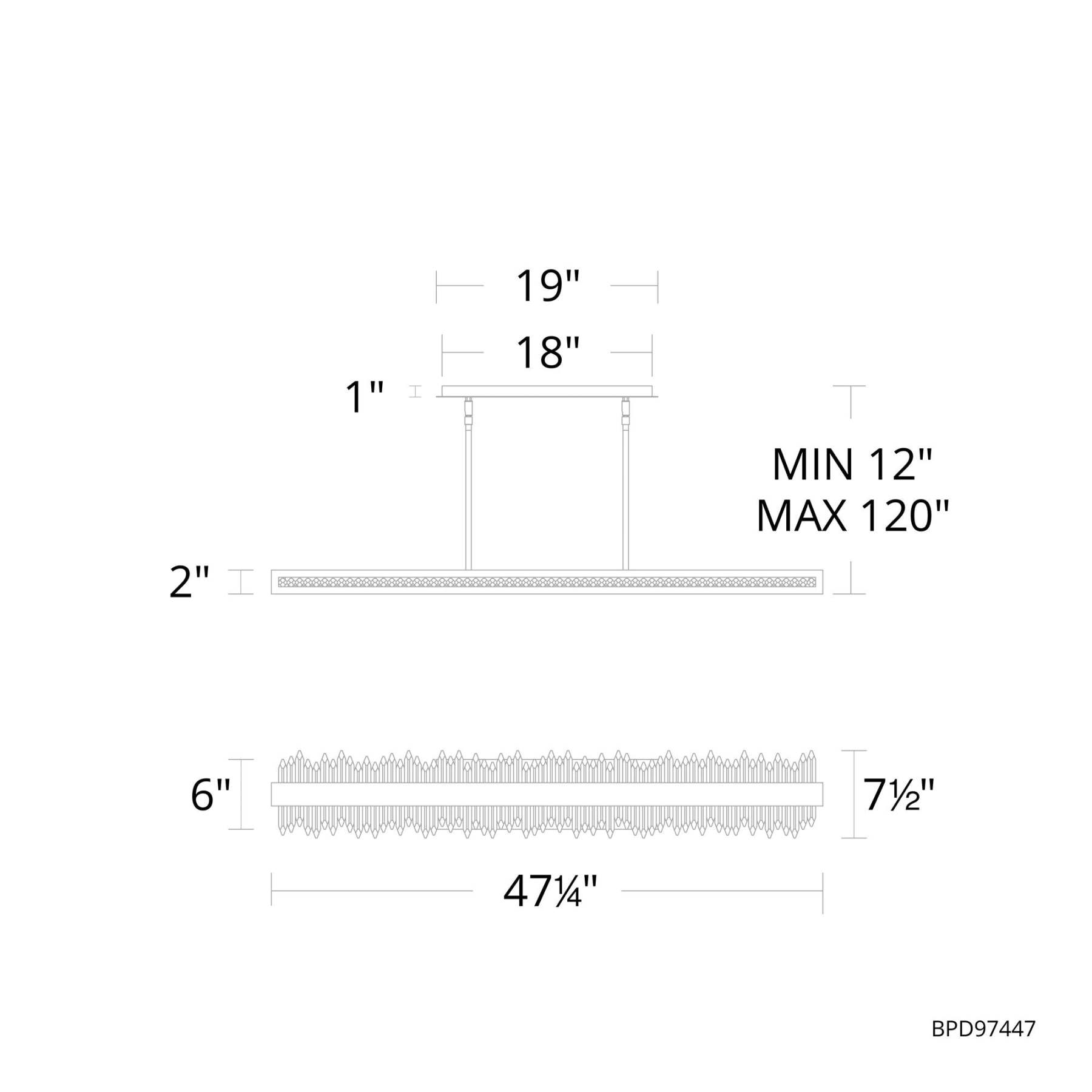 Frozen 2"H x 47.25"W 1-Light Crystal Linear Pendant in Aged Brass