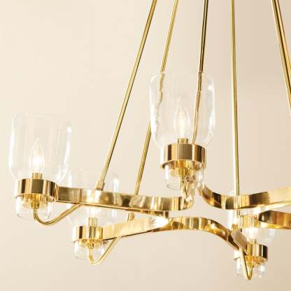 Global Views Six Light Chandelier - Shiny Brass DSC