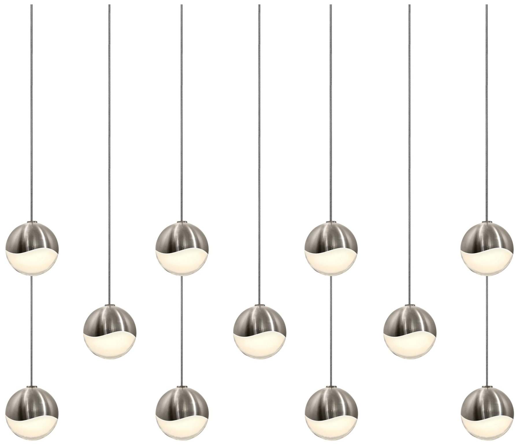 Grapes 36.25" Wide 11.Light Satin Nickel Small Rectangle LED Pendant