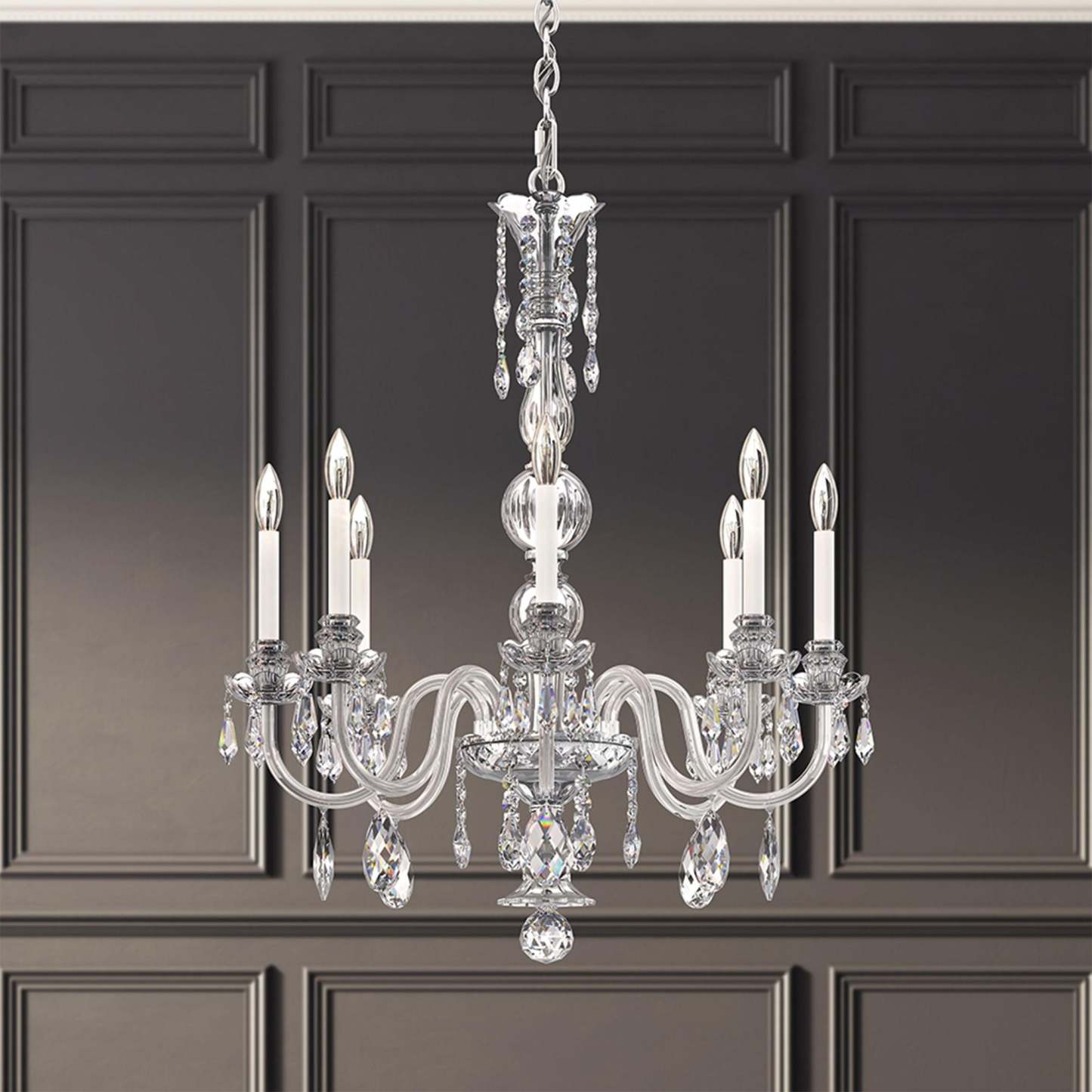 Hamilton Nouveau 35"H x 28"W 7-Light Crystal Chandelier in Silver