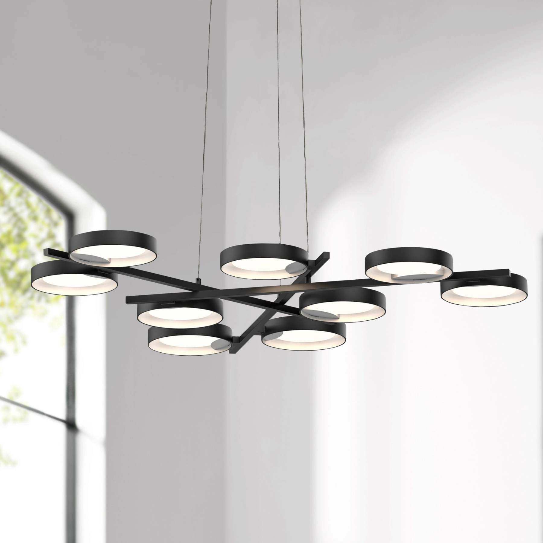 Light Guide Ring 48 1/4"W Black 9-Light LED Pendant Light