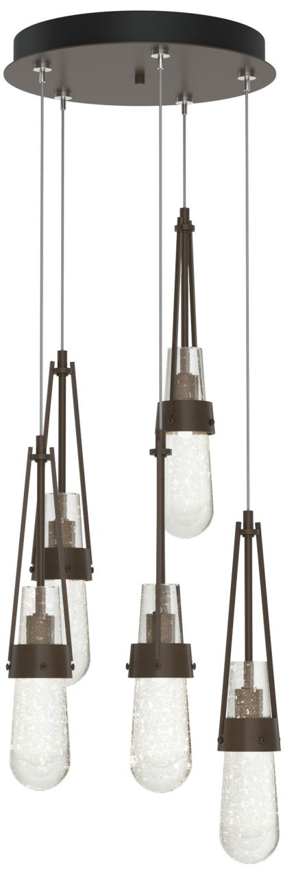 Link 13" Wide 5-Light Bronze Long Pendant With Clear Bubble Glass Shad