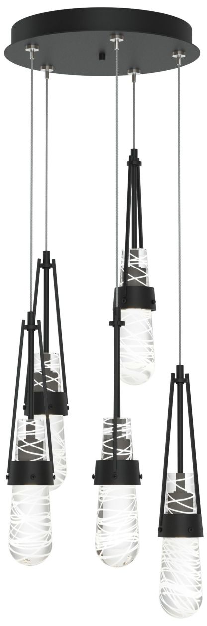 Link 13"W 5-Light Black Long Pendant w/ Clear White Threaded Glass Sha