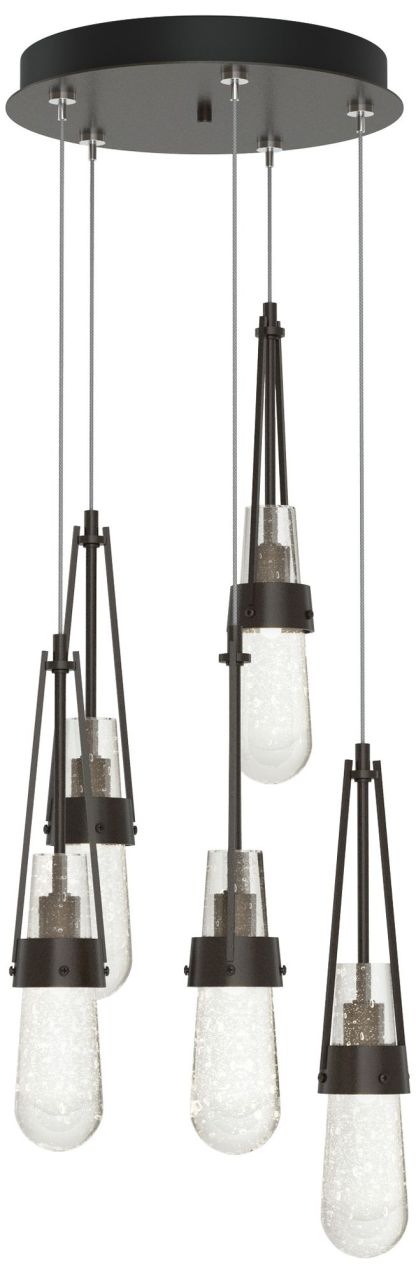 Link 13"W 5-Light Rubbed Bronze Long Pendant w/ Clear Bubble Glass Sha