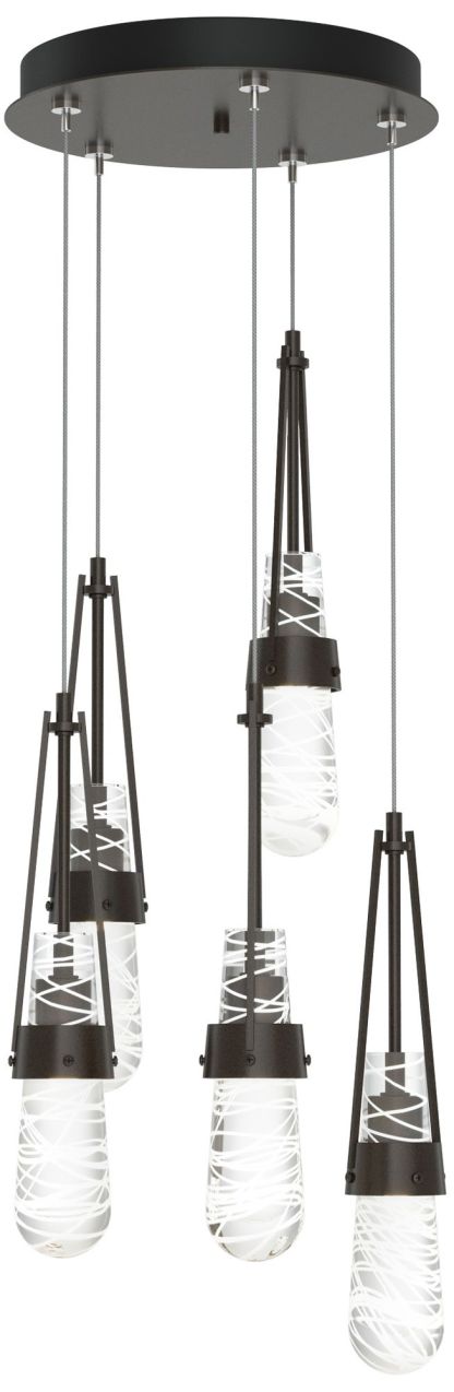 Link 13"W 5-Light Rubbed Bronze Long Pendant w/ Clear White Threaded S