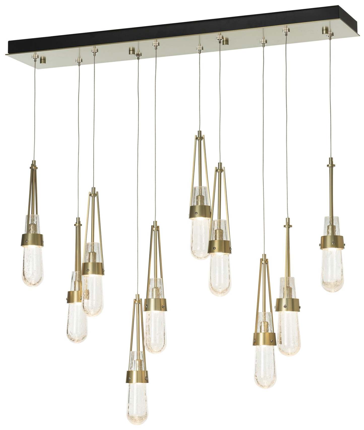 Link 44.5" Rectangular Modern Brass Long Pendant with Clear Bubble Gla