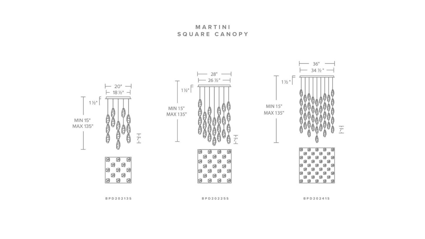 Martini 7"H x 20"W 13-Light Crystal Multi-Light Pendant in Polish