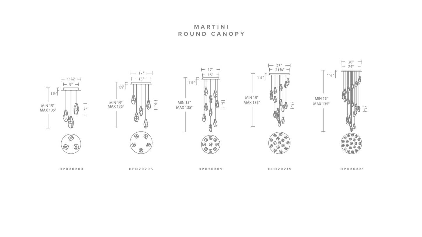 Martini 7"H x 23"W 15-Light Crystal Multi-Light Pendant in Black