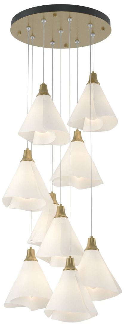 Mobius 20.8"W 9-Light Round Brass Standard Pendant w/ Spun Frost Shade