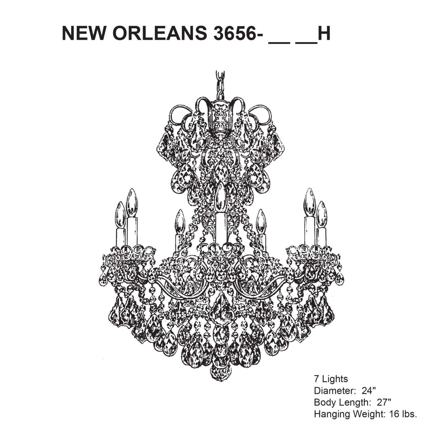 New Orleans 27"H x 24"W 7-Light Crystal Chandelier in Heirloom Br