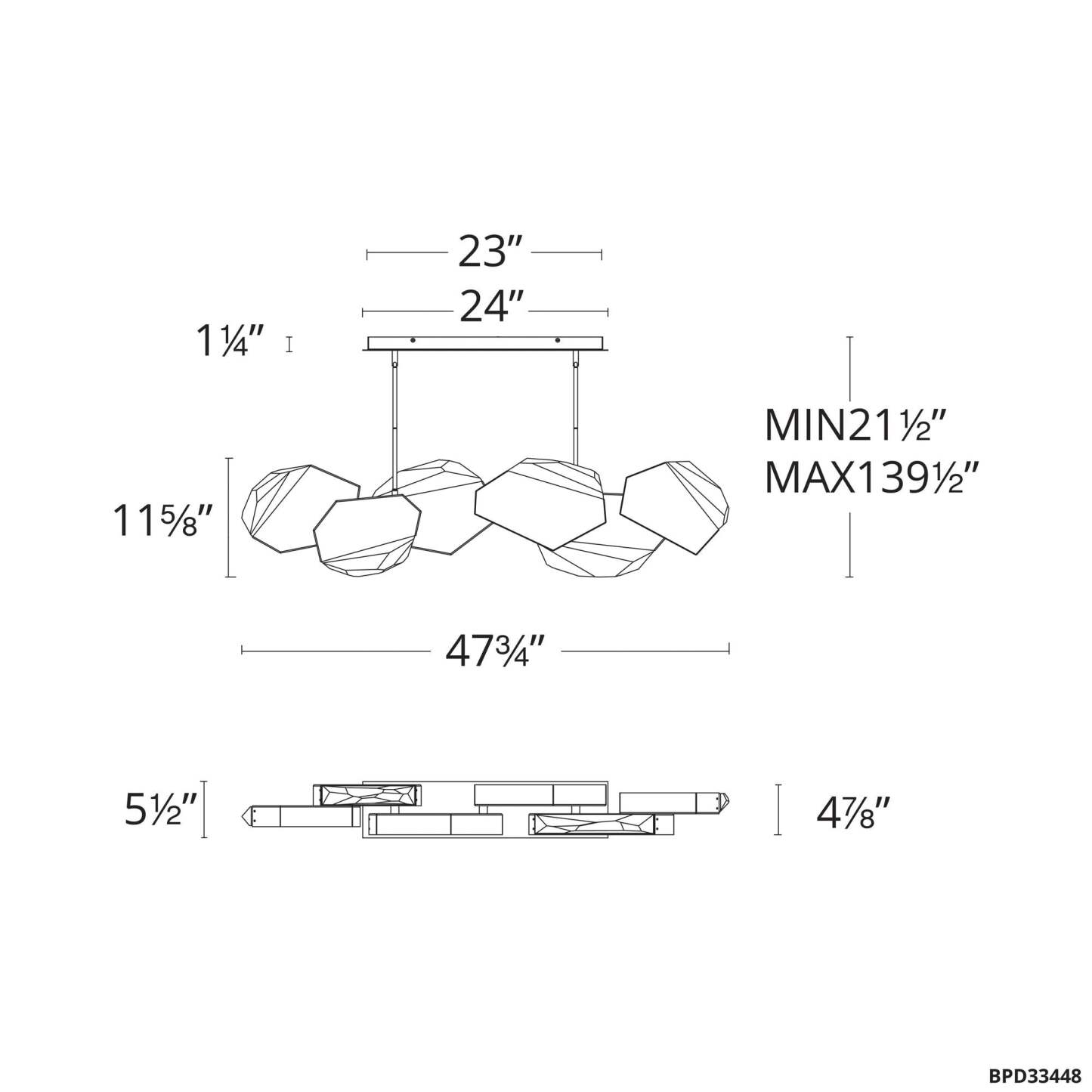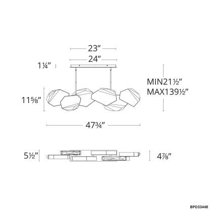 Palisade 11.75"H x 47.75"W 6-Light Crystal Linear Pendant in Blac