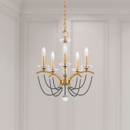 Priscilla 22"H x 18"W 5-Light Crystal Chandelier in Heirloom Gold