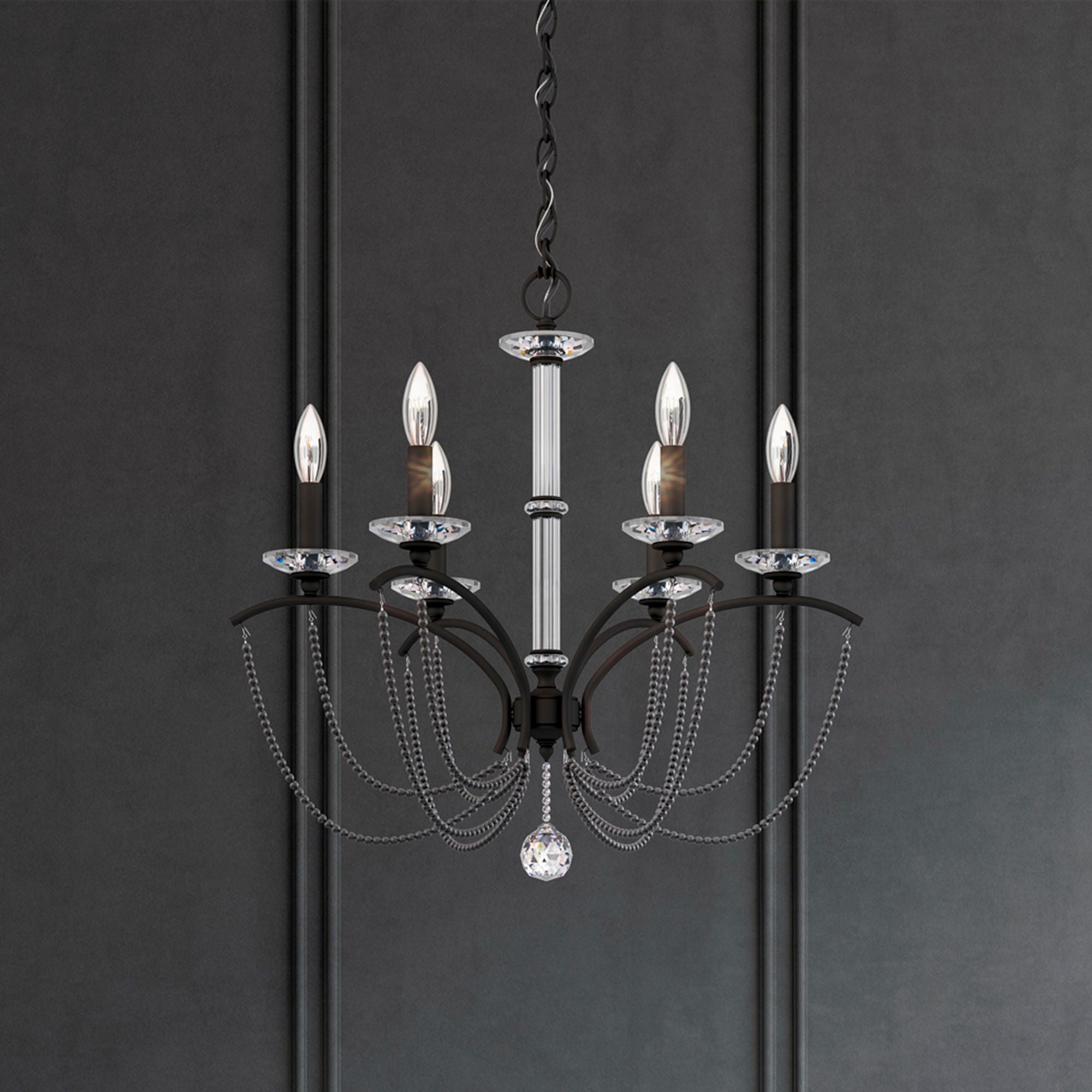 Priscilla 23.5"H x 23.5"W 6-Light Crystal Chandelier in Black