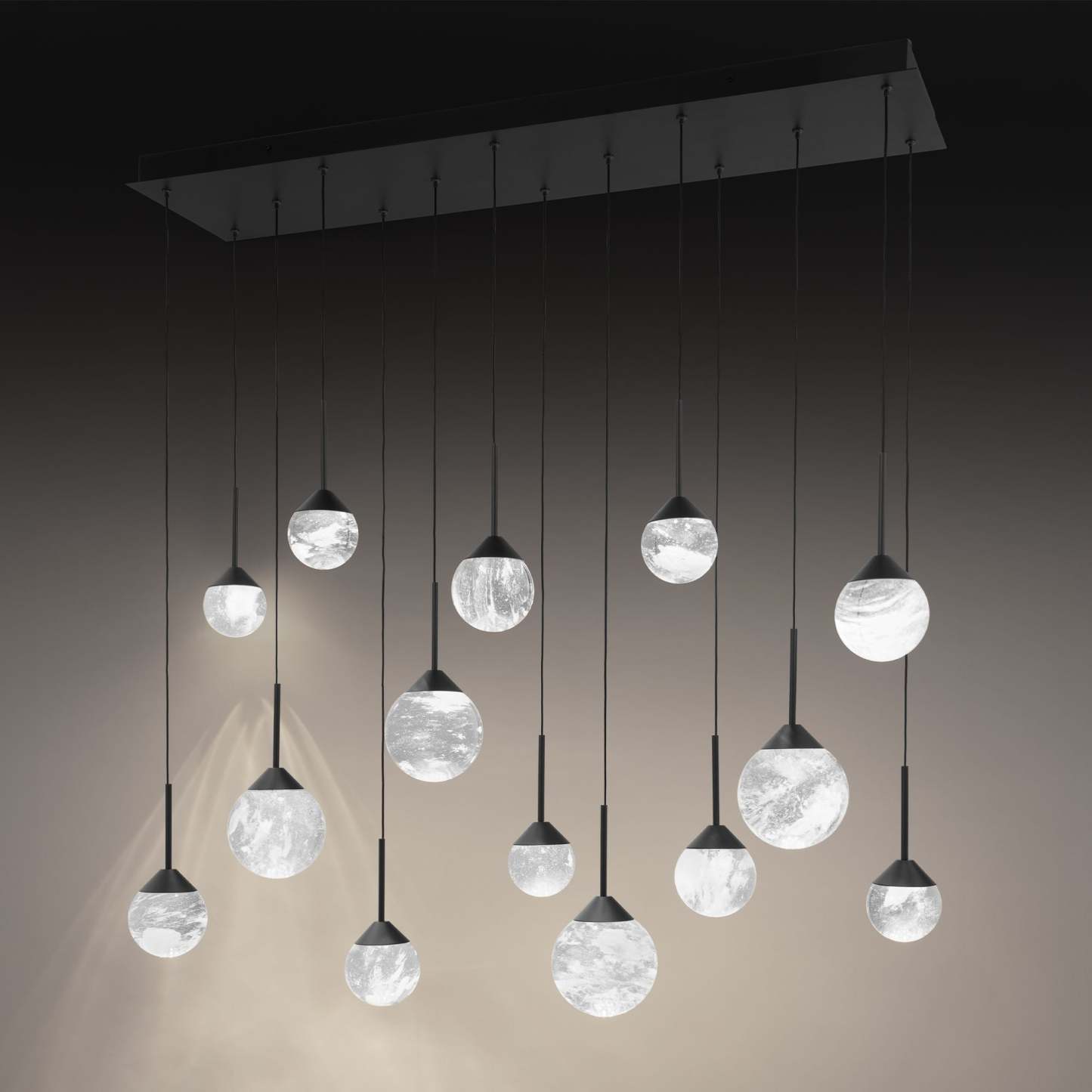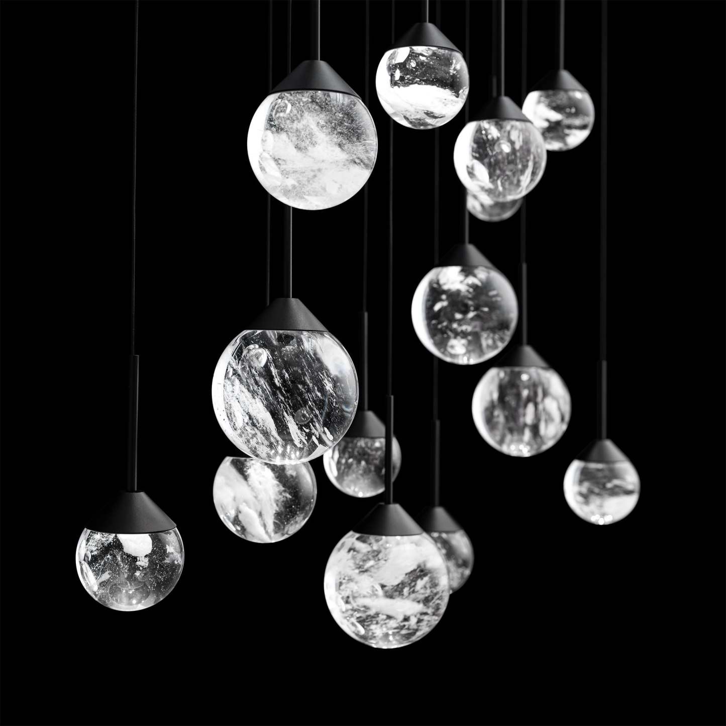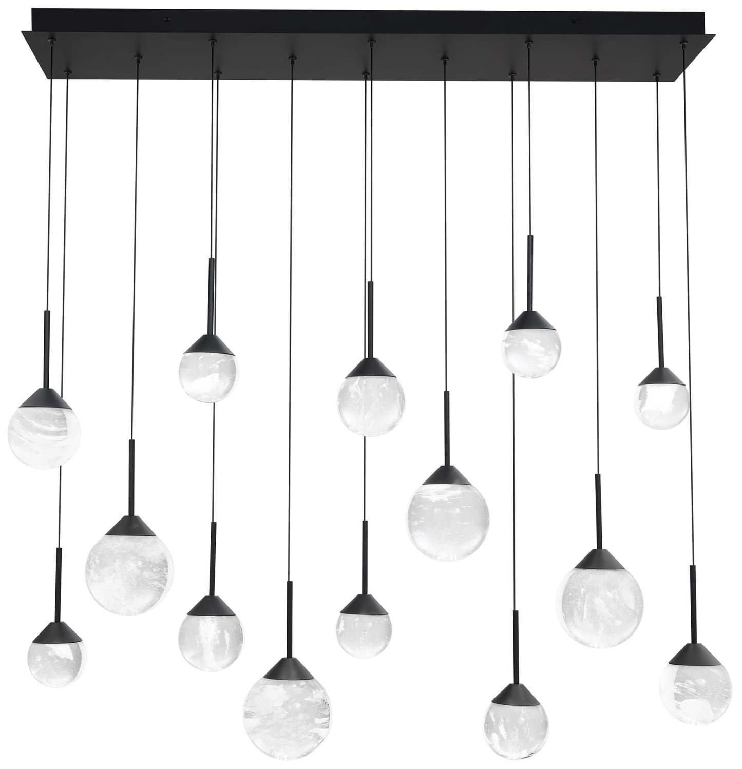 Quest 8"H x 40"W 14-Light Crystal Multi-Light Pendant in Black