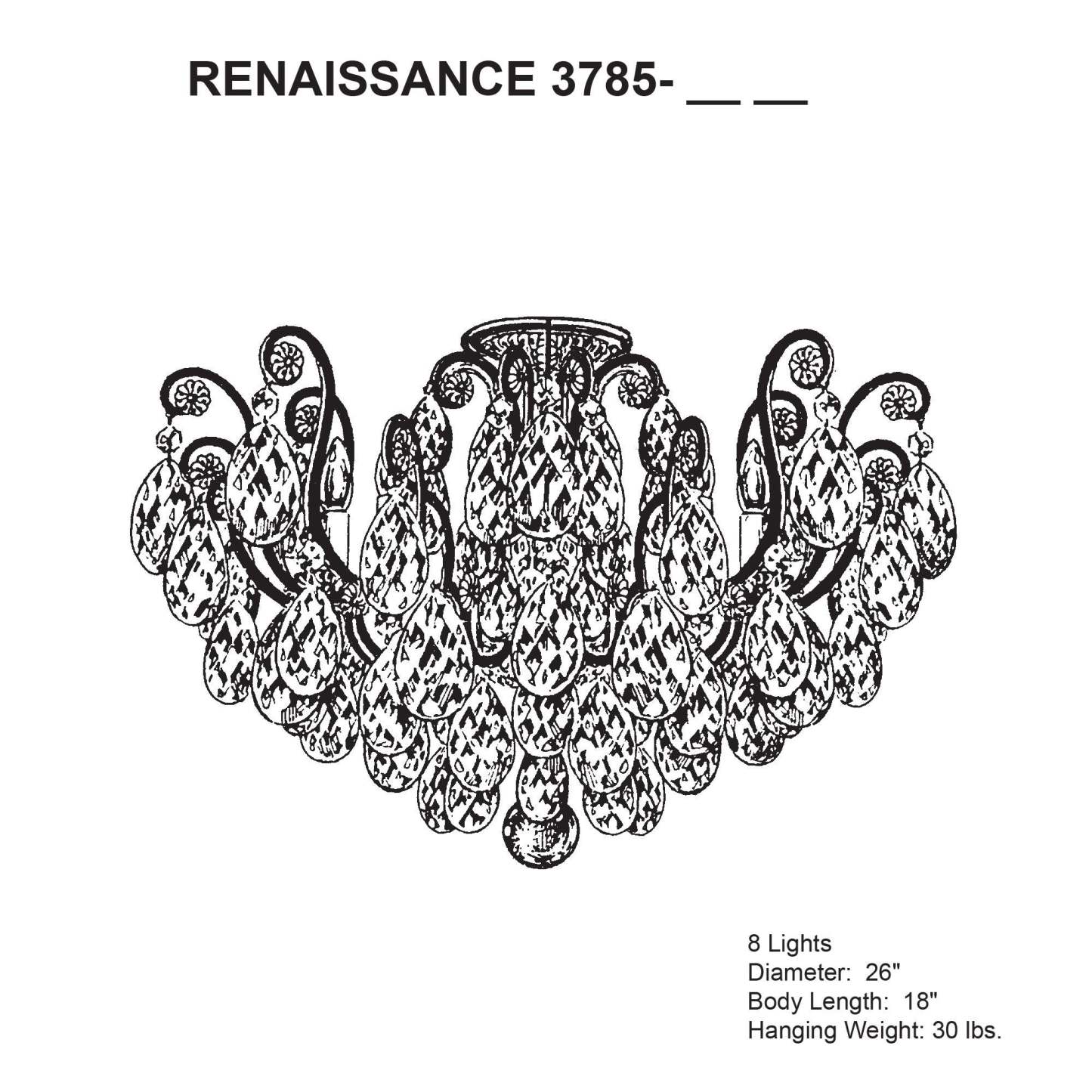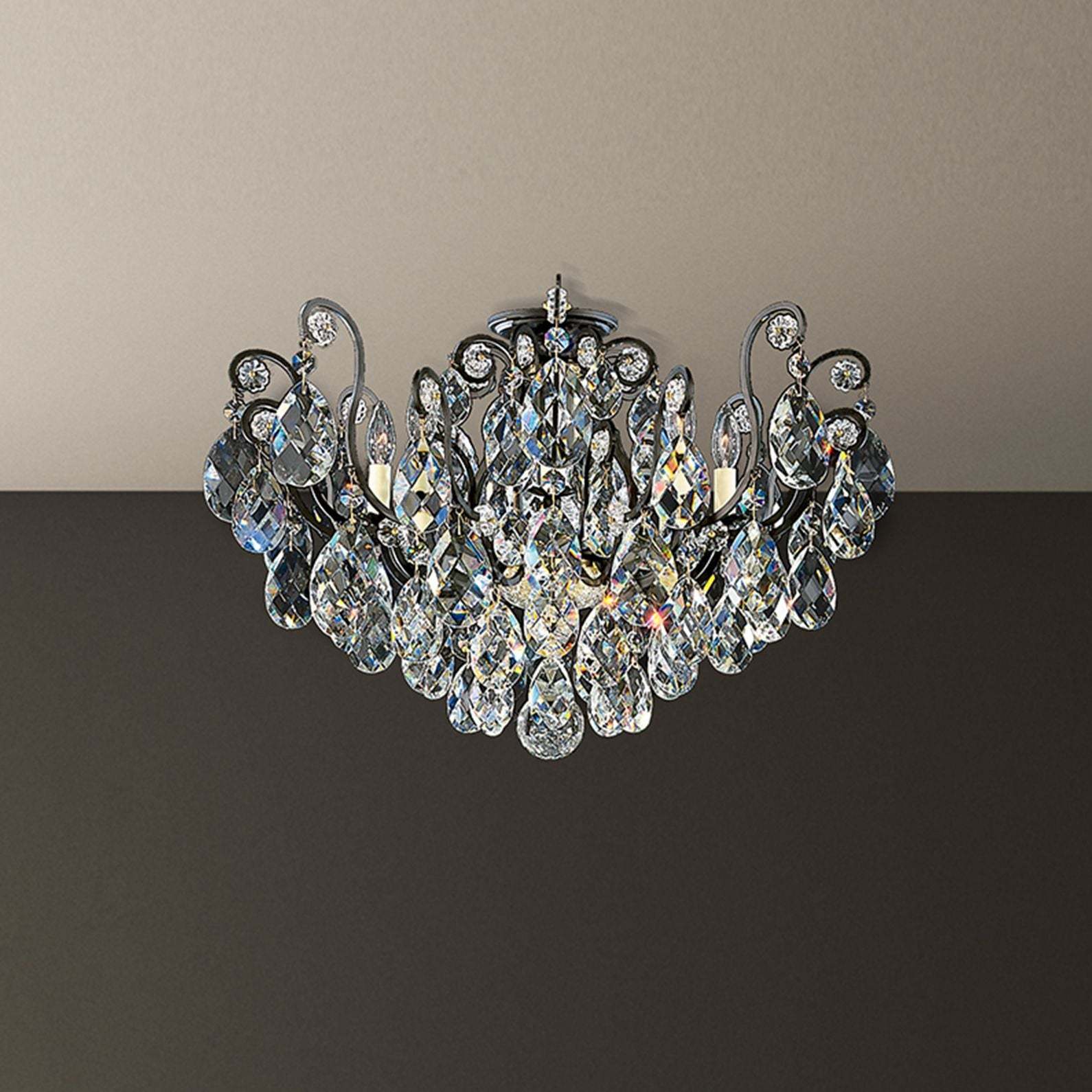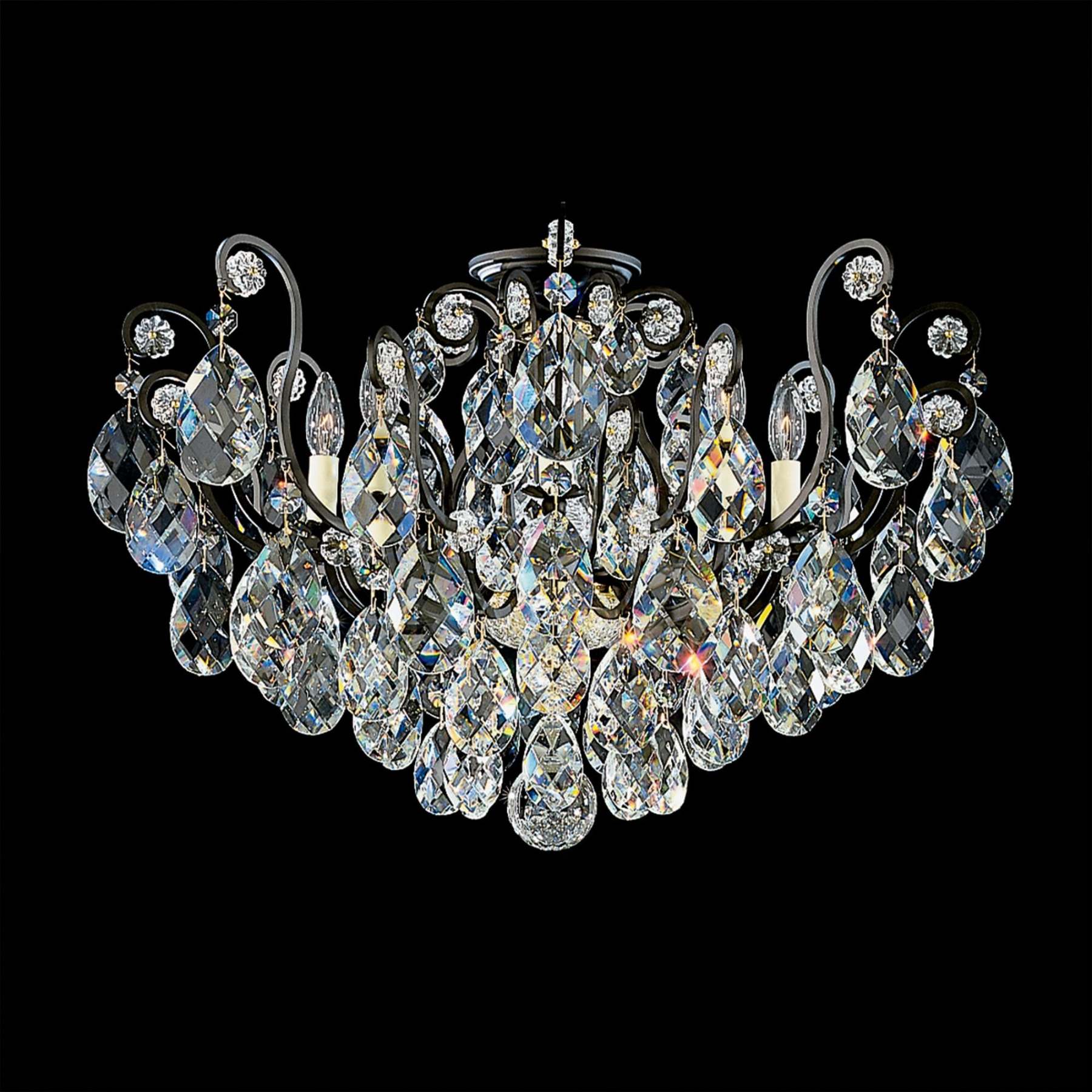 Renaissance 18"H x 26"W 6-Light Crystal Semi-Flush Mount in Black