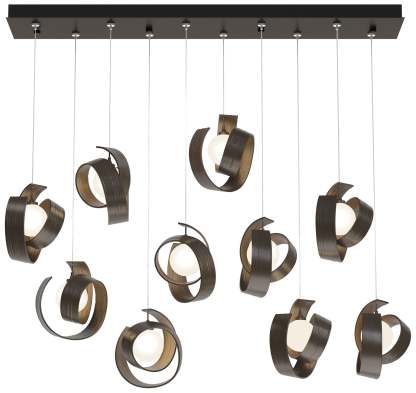 Riza 12.2" Wide 10-Light Bronze Pendant With Opal Glass Shade