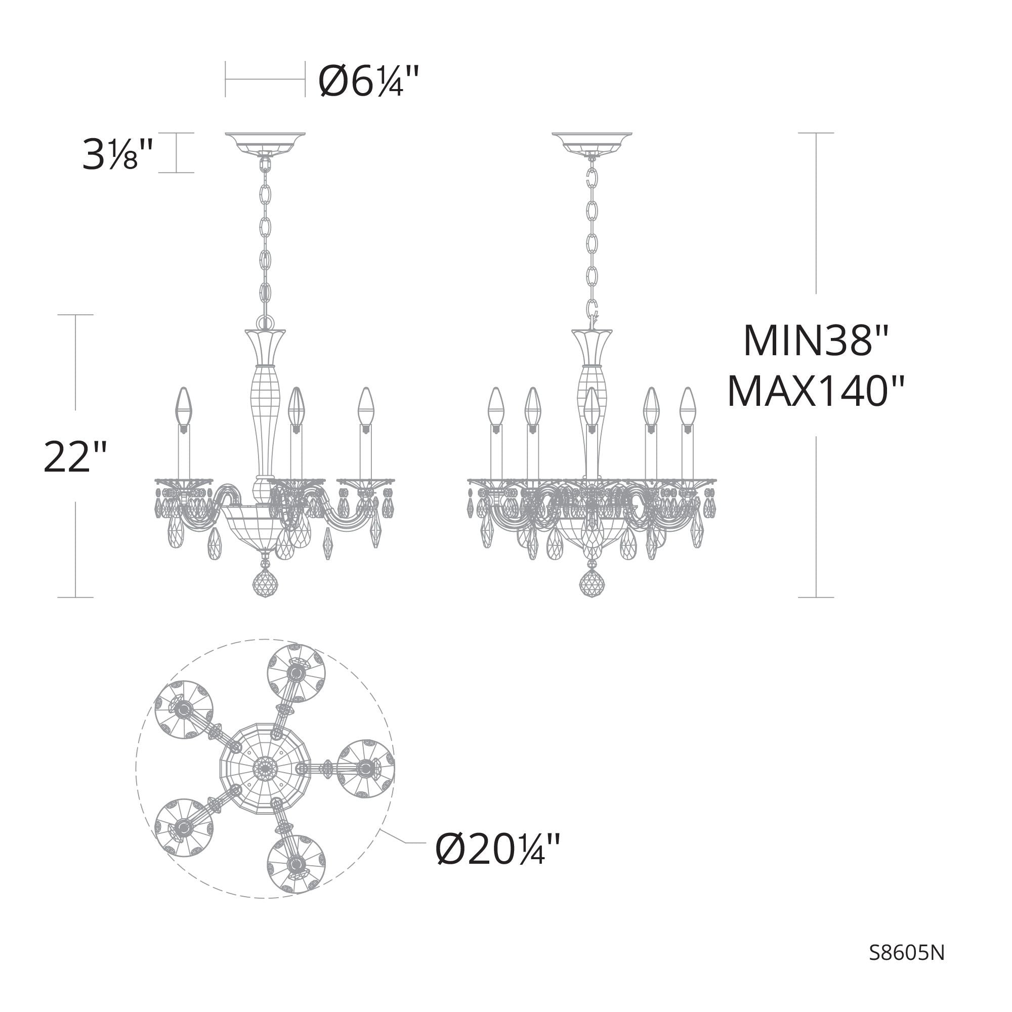 San Marco 22"H x 20.3"W 5-Lt Crystal Chandelier in Hrlm Bronze