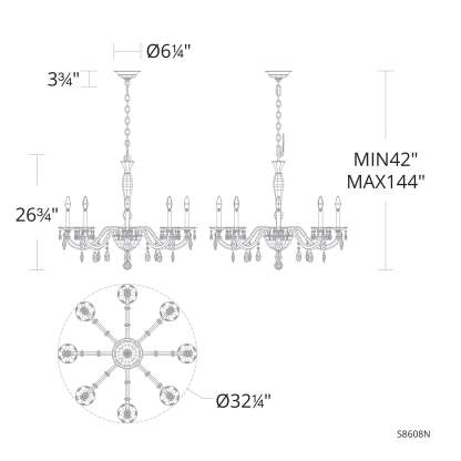 San Marco 26.8"H x 32.3"W 8-Lt Crystal Chandelier in Hrlm Gold