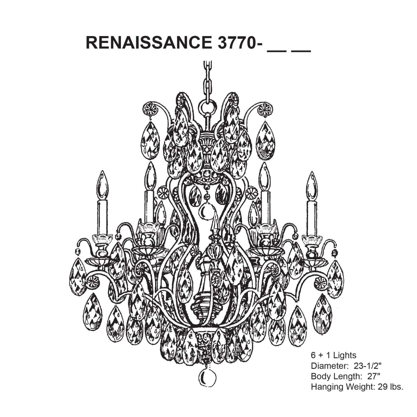• Takes six 60 watt candelabra bulbs (not included).