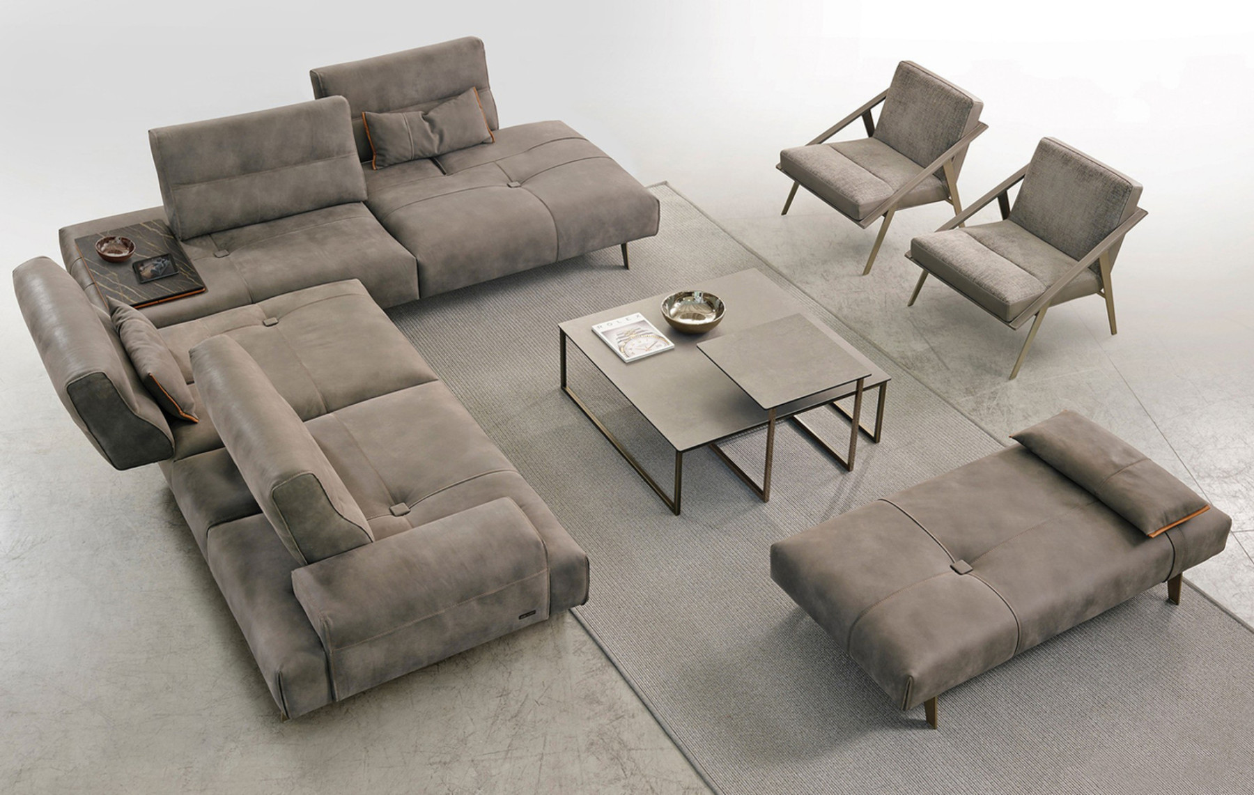 - Integrated Side Table with Anthracite Ceramic Top and Black Chrome Frame