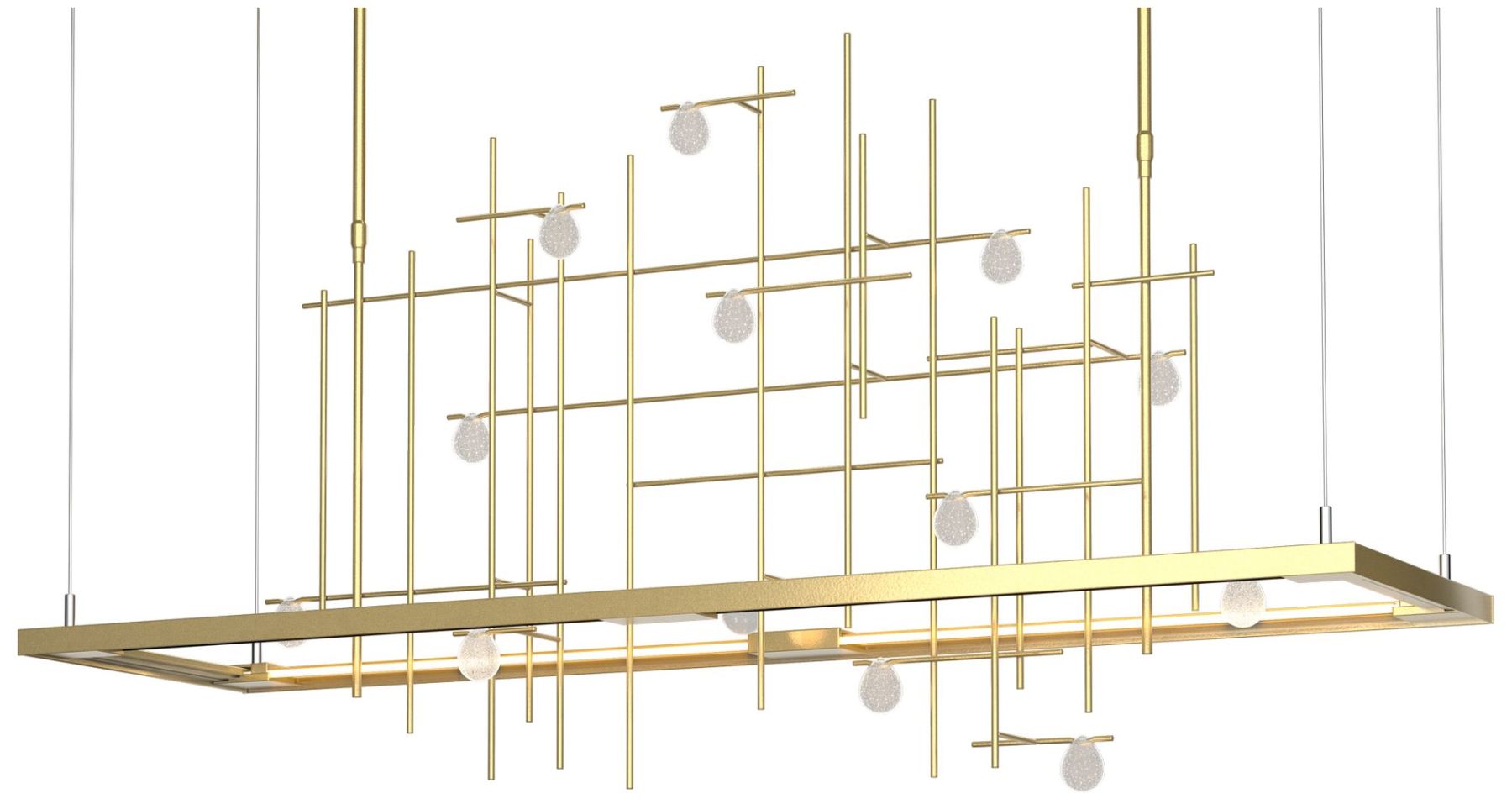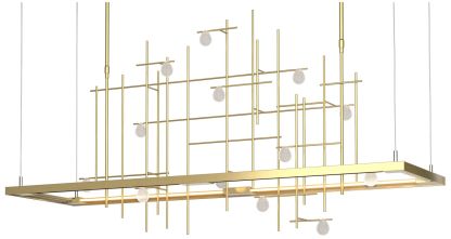Spring 53.4"W Brass Short Height LED Pendant w/ Clear Bubble Glass Sha