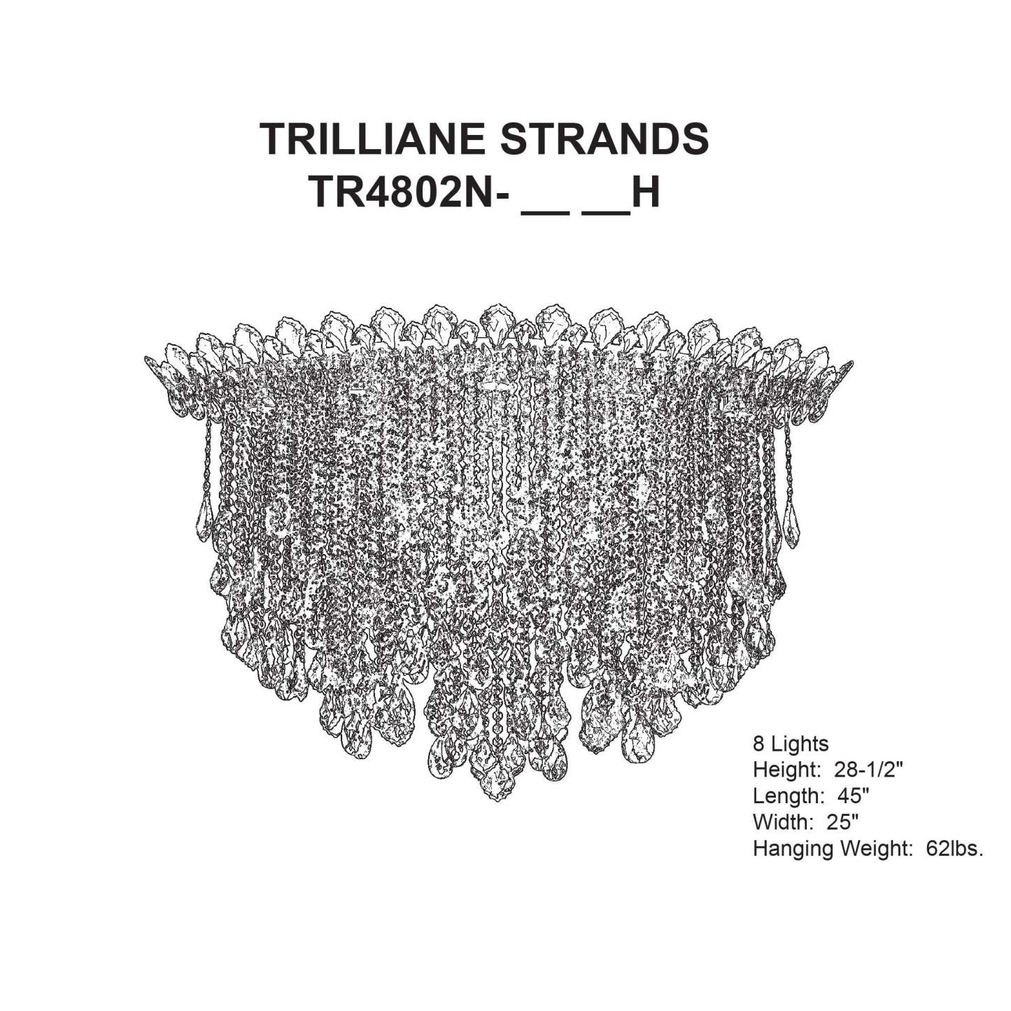 Trilliane Strands 28.5"H x 45"W 8-Lt Crystal Flush in Pol Stainle