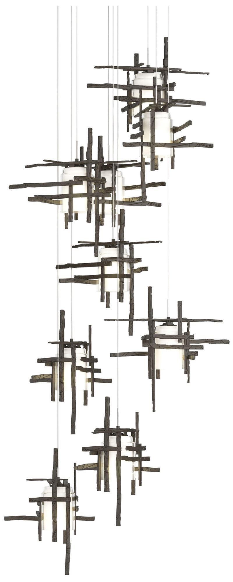 Tura 29.6"W 9-Light Round Dark Smoke Long Pendant w/ Frosted Glass Sha
