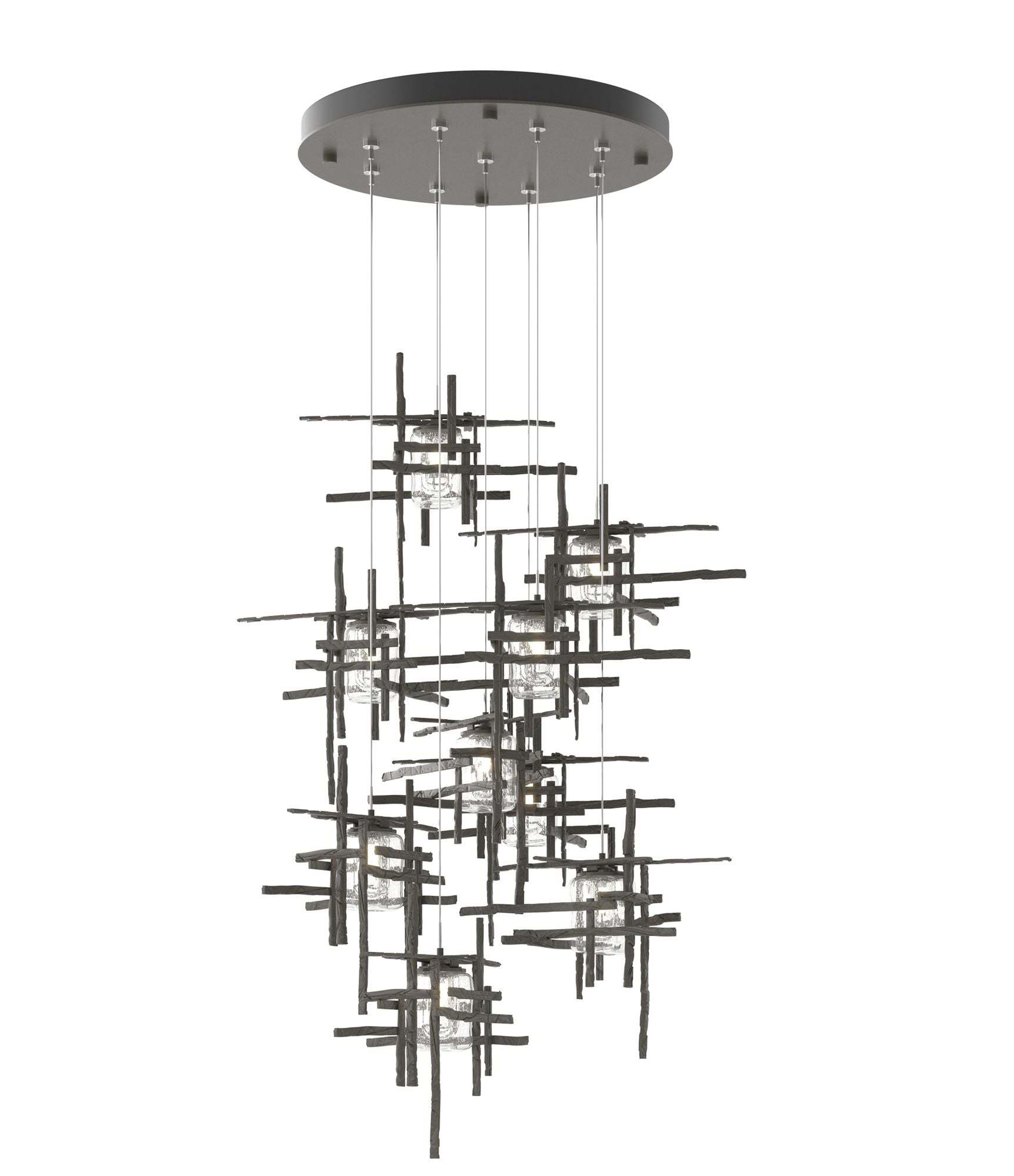 Tura 29.6"W 9-Light Round Dark Smoke Standard Pendant w/ Seeded Glass