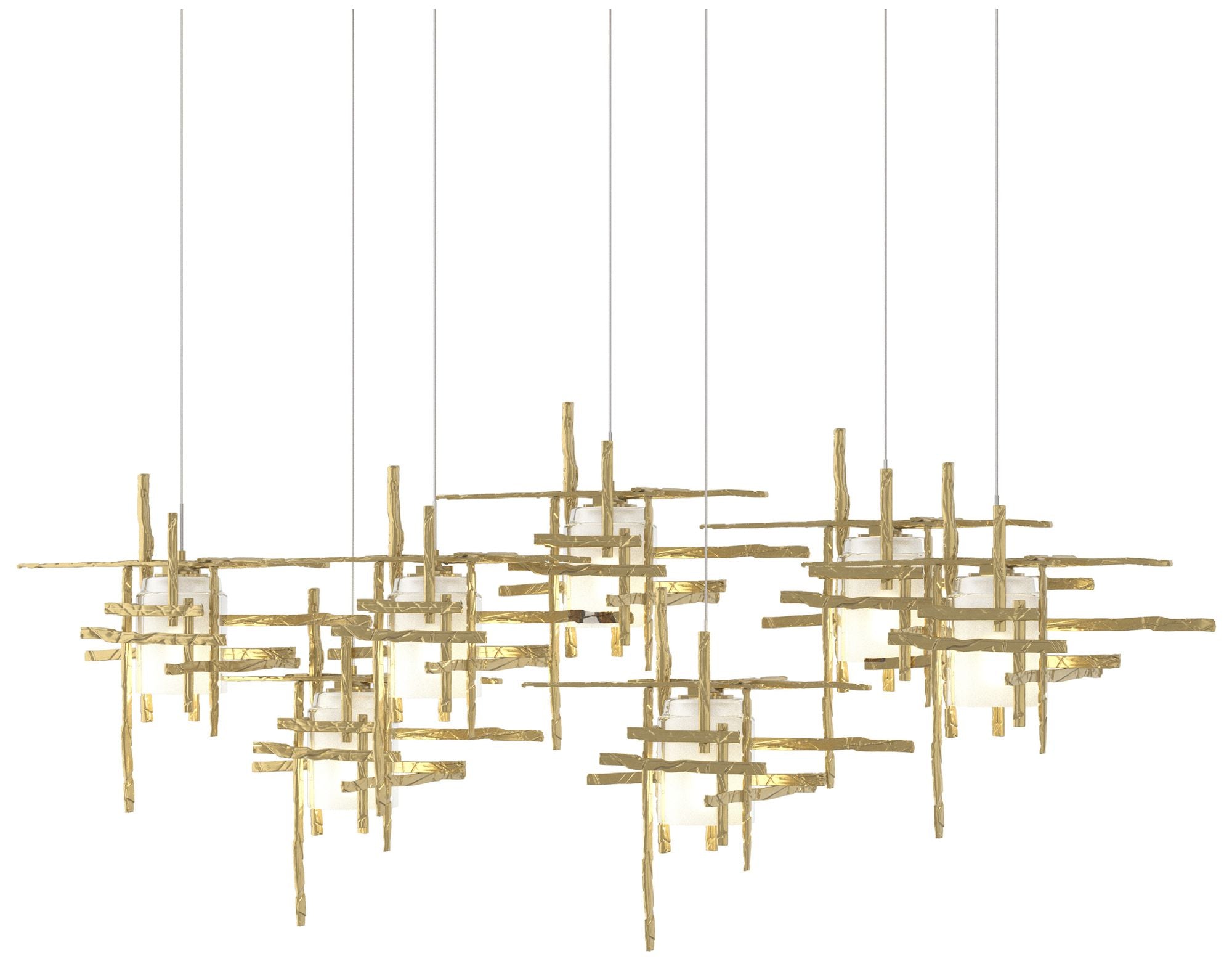 Tura 53.6"W 7-Light Rectangular Brass Long Pendant w/ Frosted Glass Sh