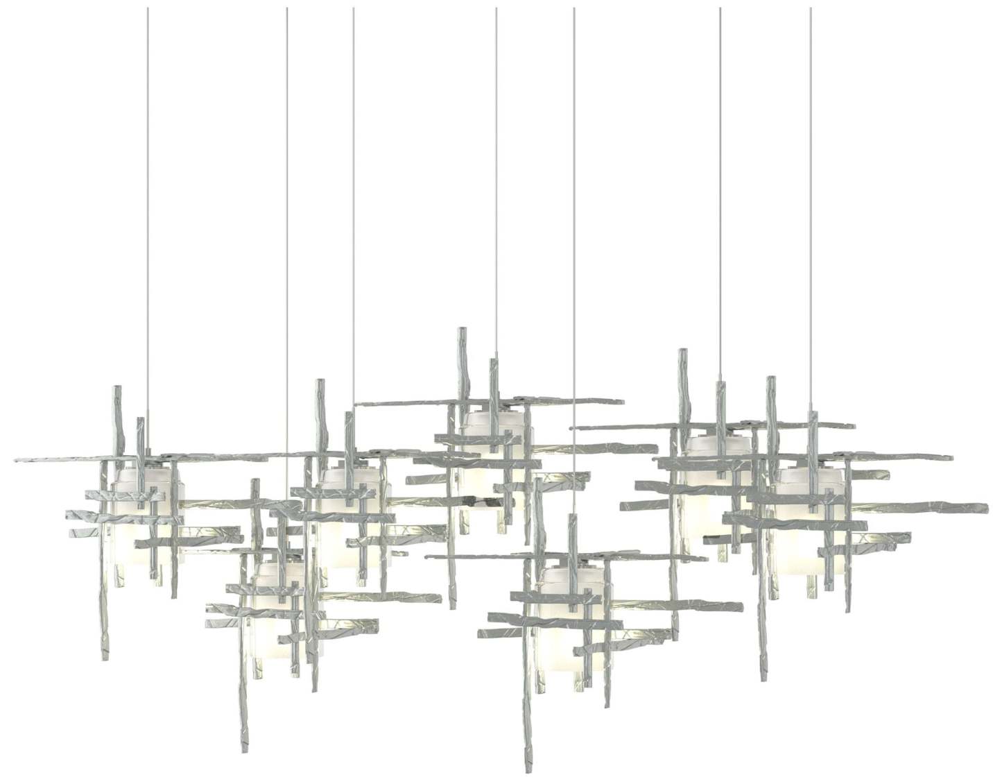 Tura 53.6"W 7-Light Rectangular Platinum Long Pendant w/ Frosted Shade
