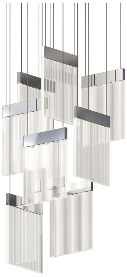 V Panels 16.25" Wide 8 Light Polished Chrome Pendant