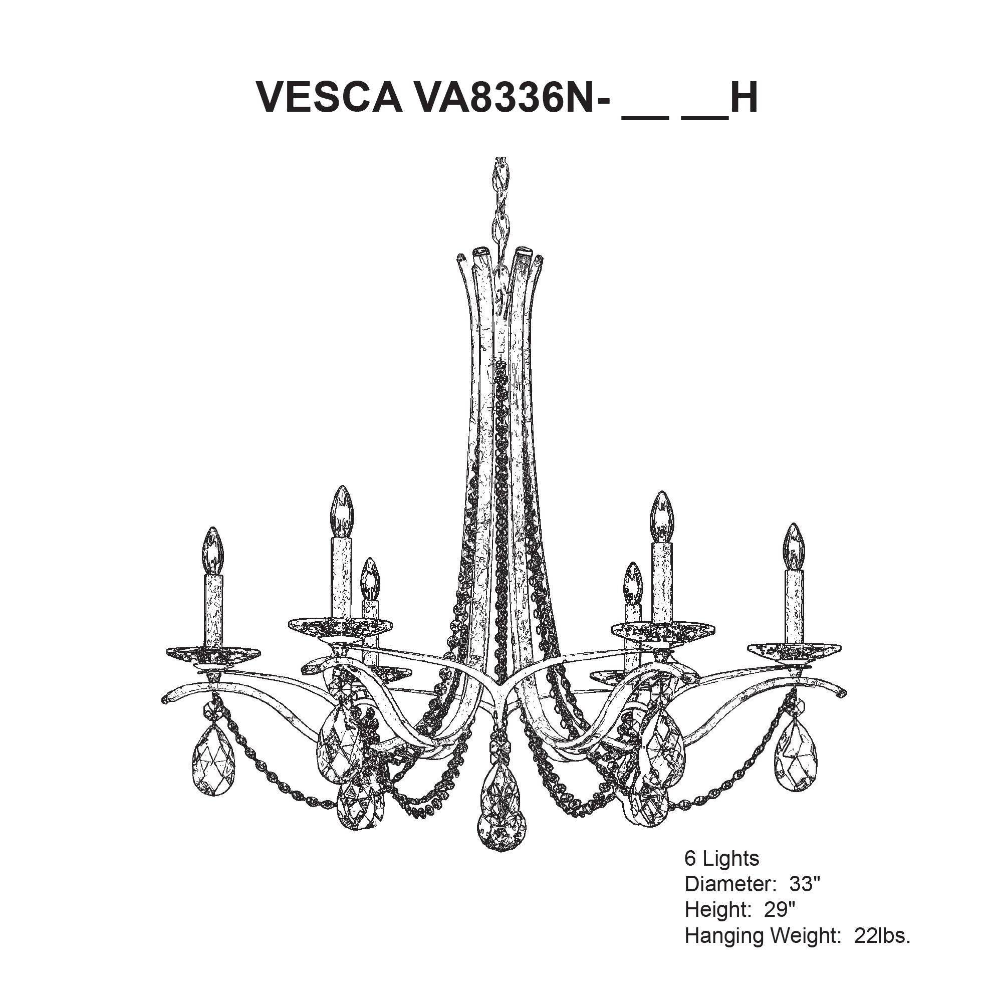 Vesca 29"H x 33"W 6-Light Crystal Chandelier in French Gold