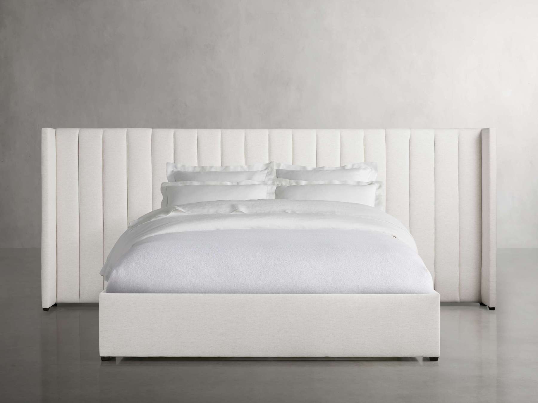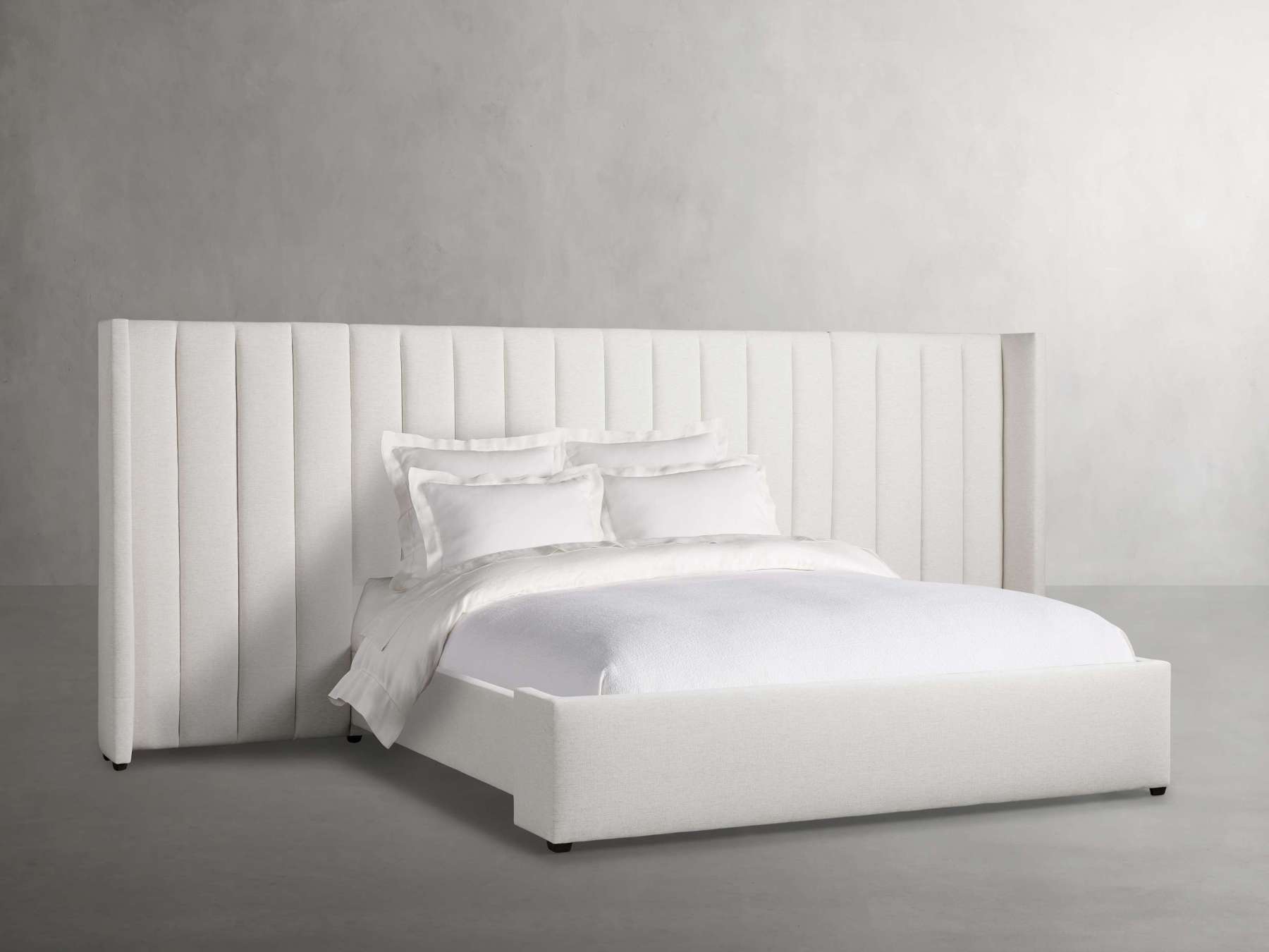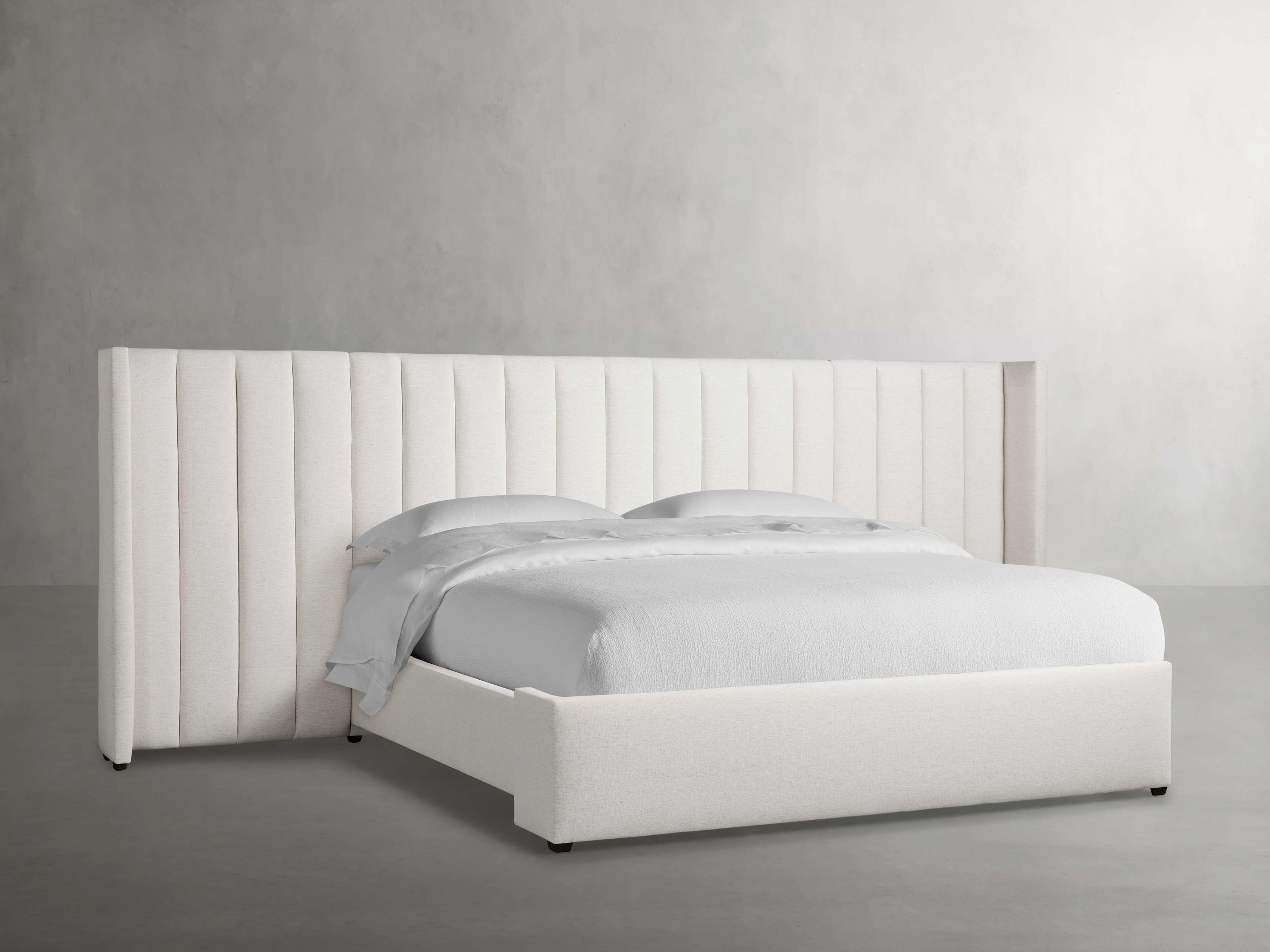 Wyller Channel-Stitched Extended Headboard Bed with Low Footboard