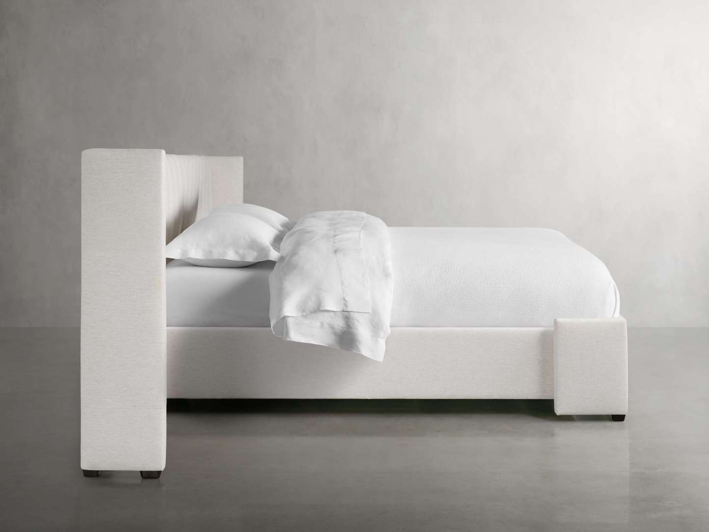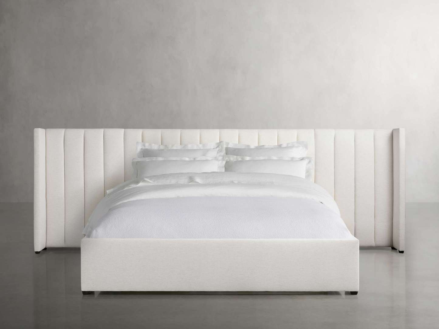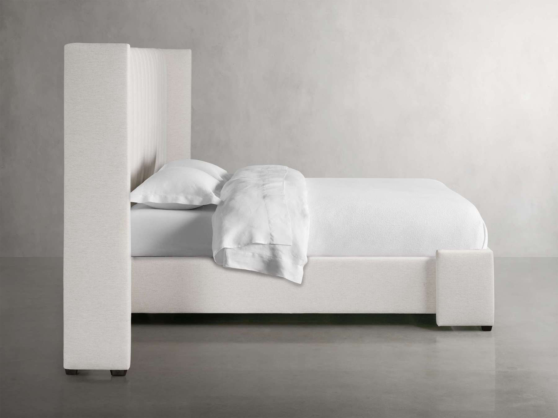 Wyller Channel-Stitched Extended Headboard Bed with Low Footboard